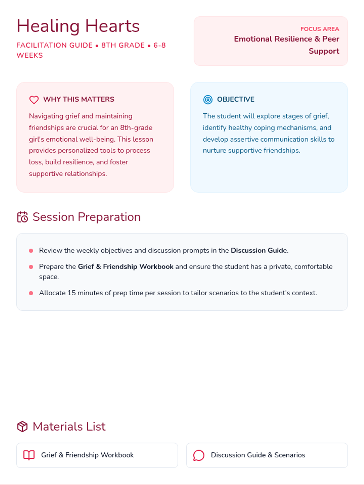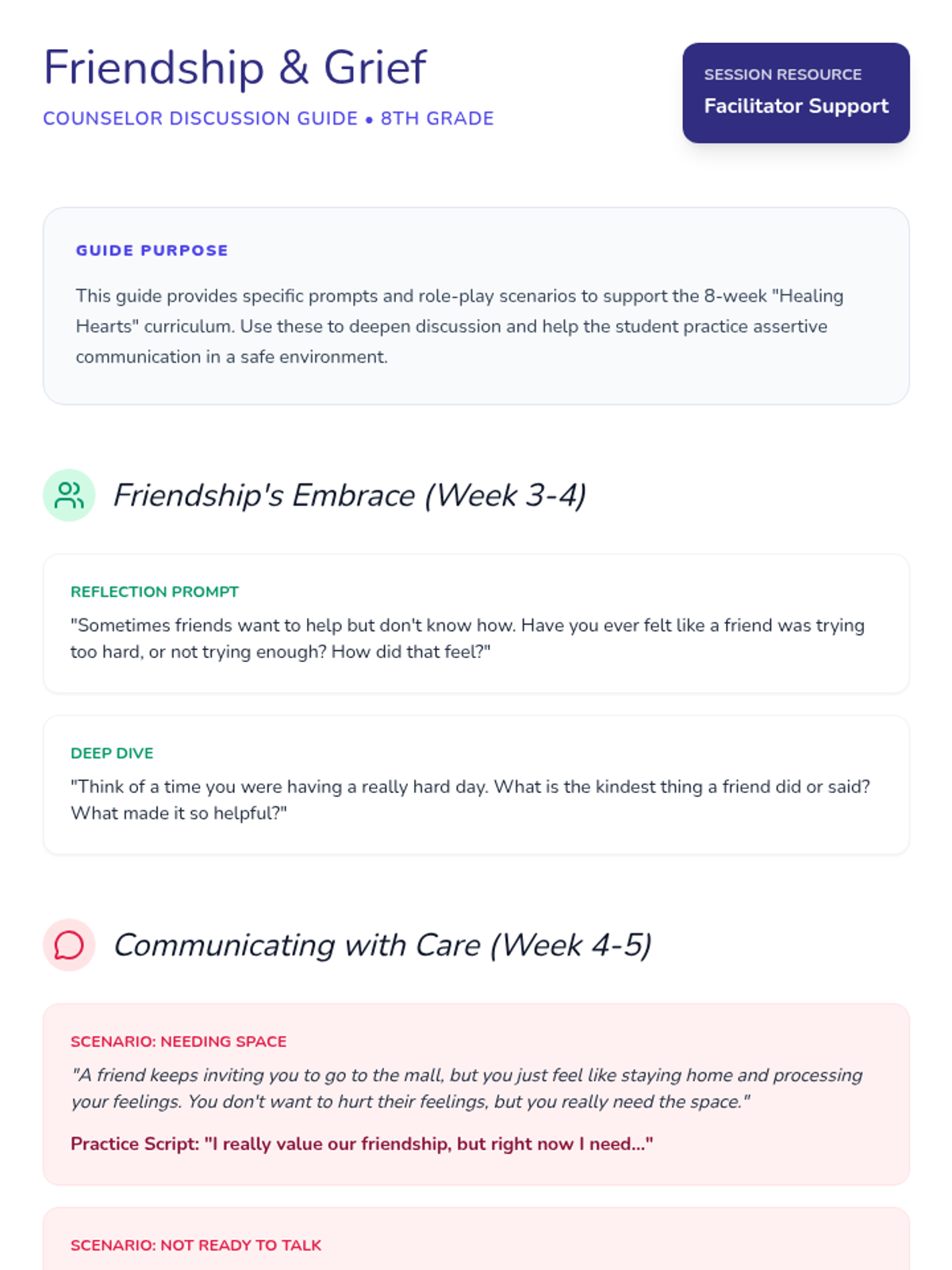 Students will explore stages of grief, identify healthy coping mechanisms, and develop effective communication skills to maintain and build supportive friendships during challenging times.