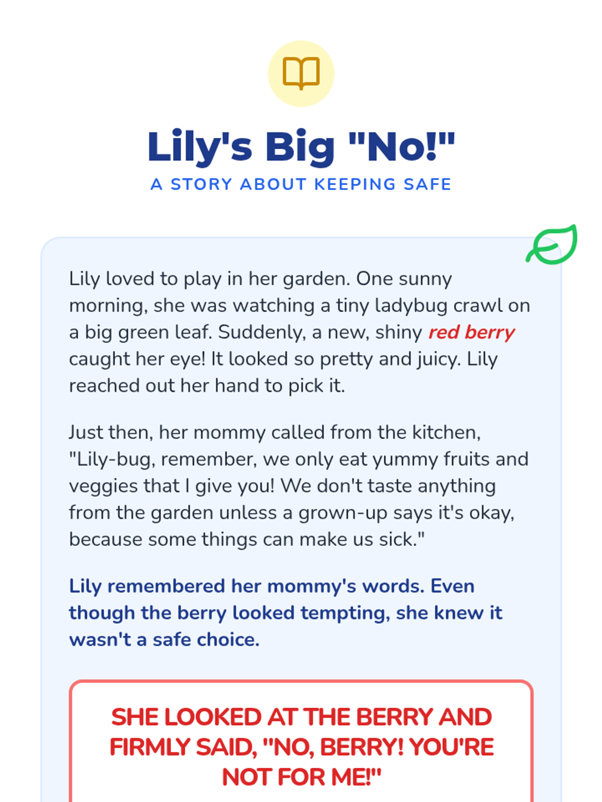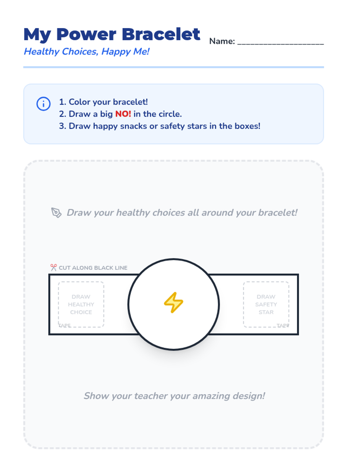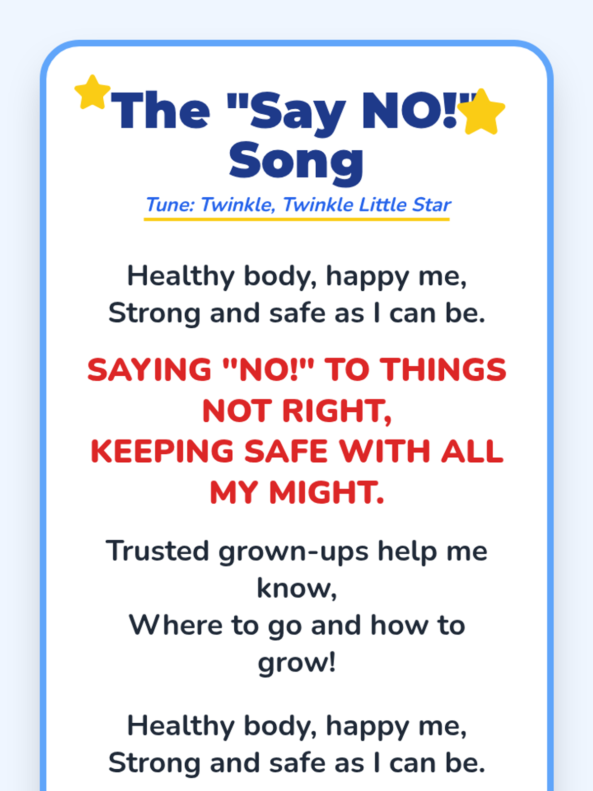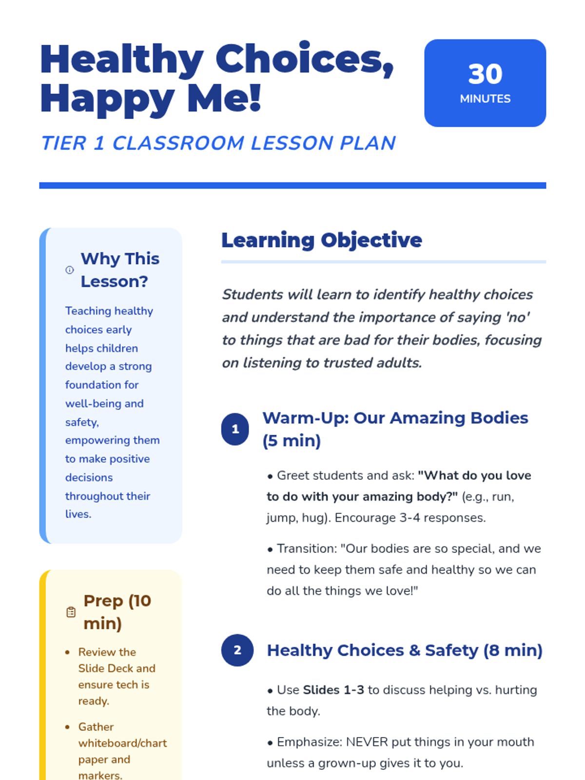 A 30-minute Pre-K lesson that introduces the concept of healthy choices, emphasizing the power of saying 'no' to unsafe things and listening to trusted adults.