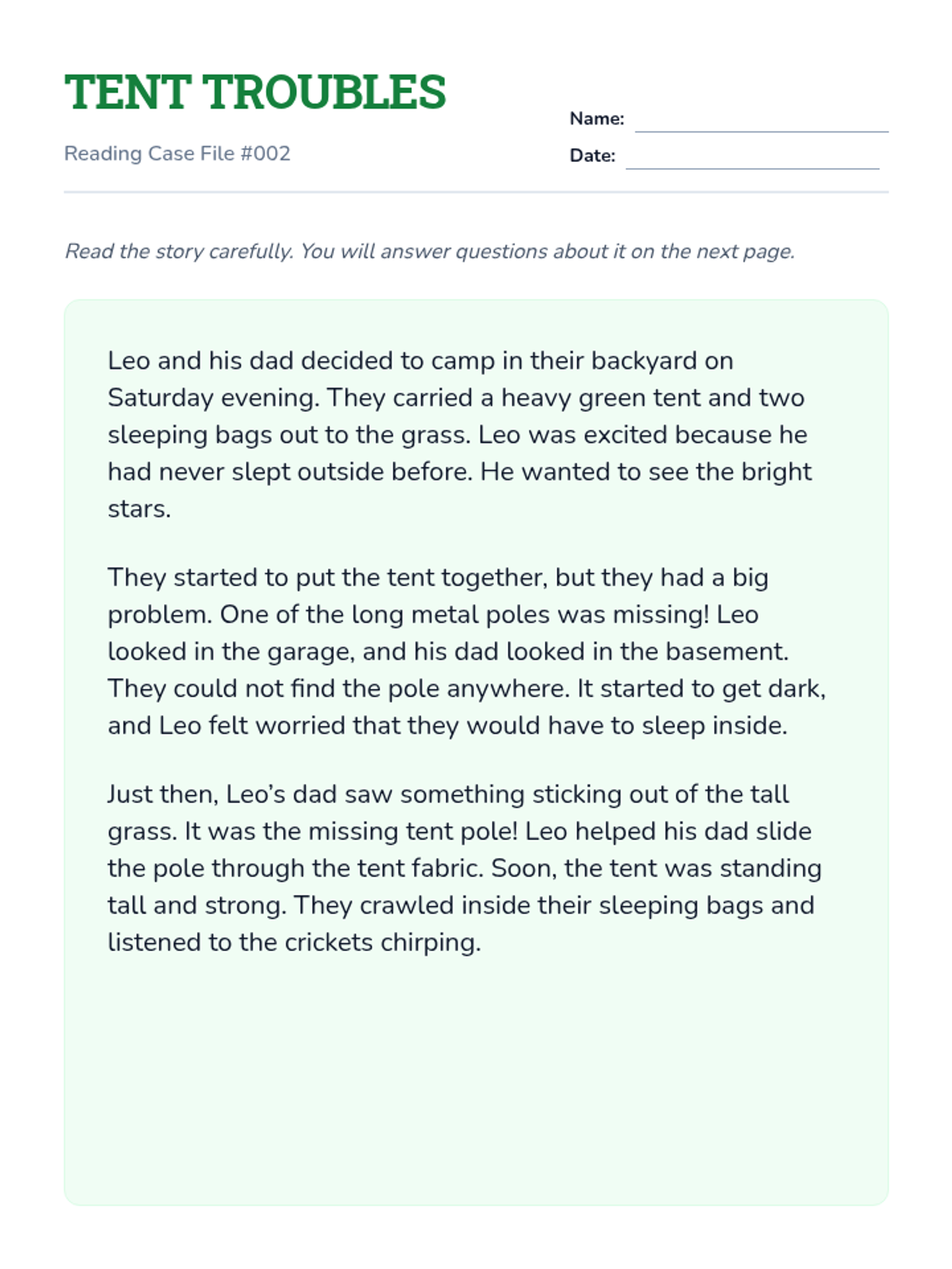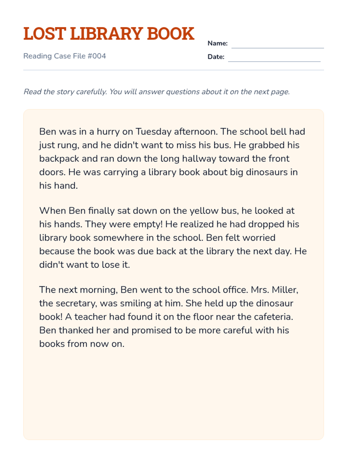 A set of three reading comprehension passages designed for 3rd-grade students with IEP goals. Each passage focuses on foundational "Wh-" questions (Who, What, When, Where, Why) to build core literacy skills through engaging, short narratives.