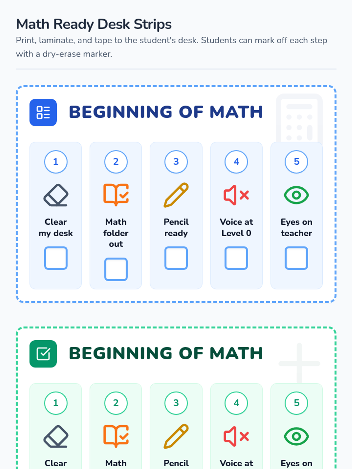 A short lesson focused on establishing consistent routines at the start of math class to support students with executive functioning needs.