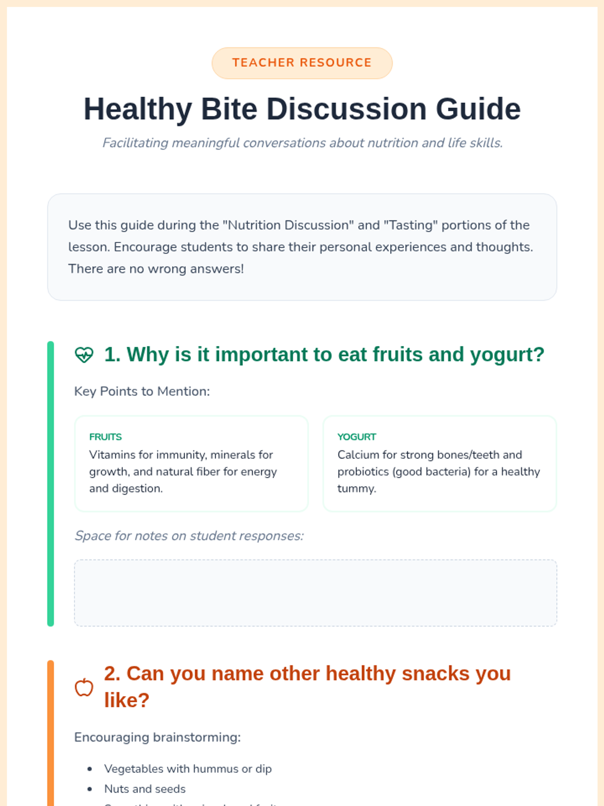 Discussion about healthy snack choices and identifying nutritious options to fuel the body.