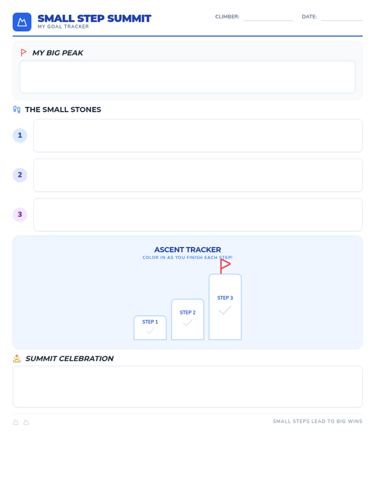 A lesson designed to help students understand self-motivation through the concept of breaking large, overwhelming tasks into small, manageable goals using a 'mountain climber' metaphor.