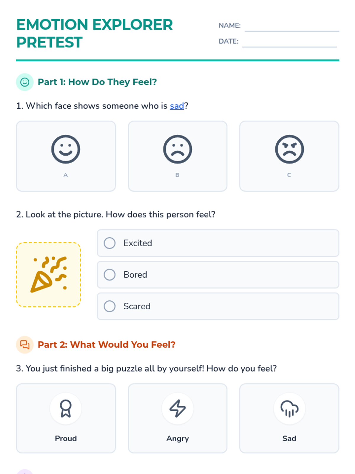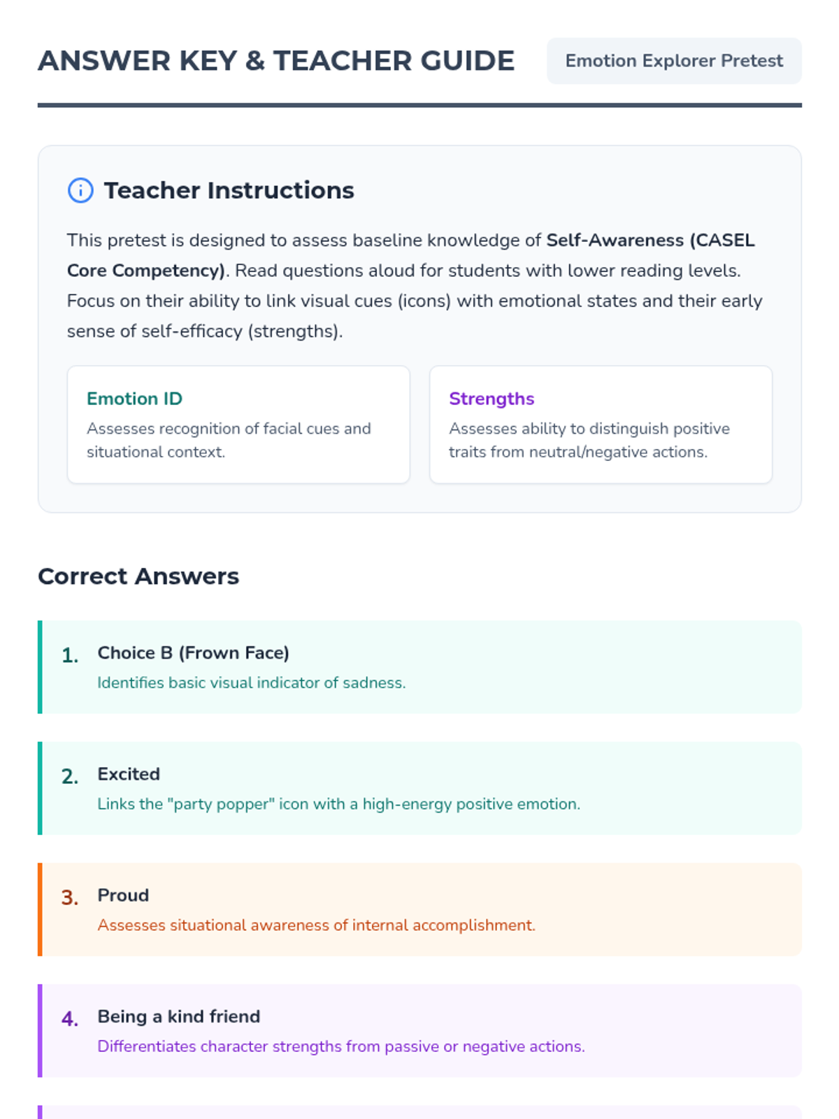 A foundational lesson for 2nd graders to begin identifying their own emotions and recognizing their unique personal strengths through interactive exploration.
