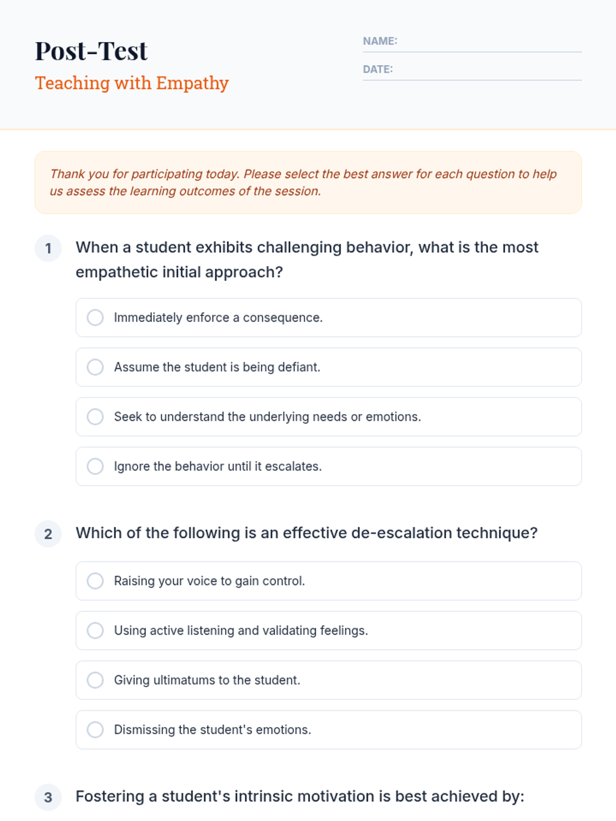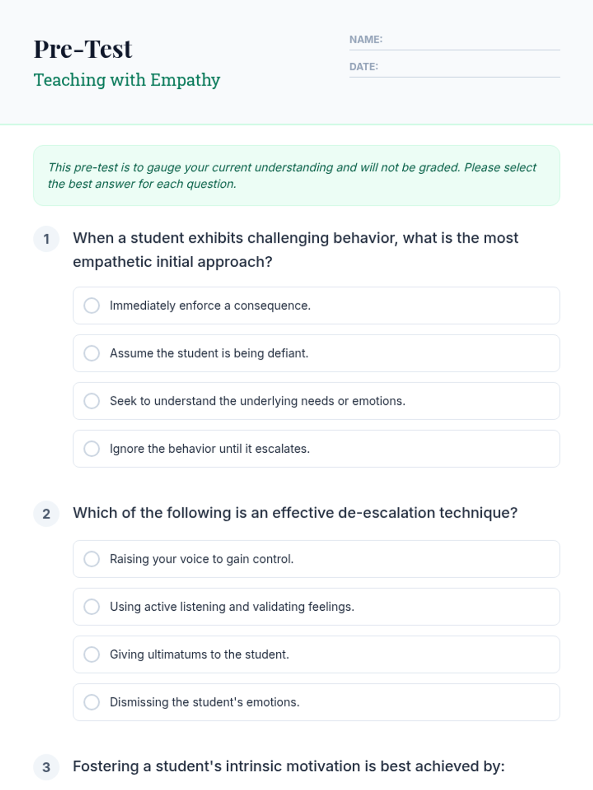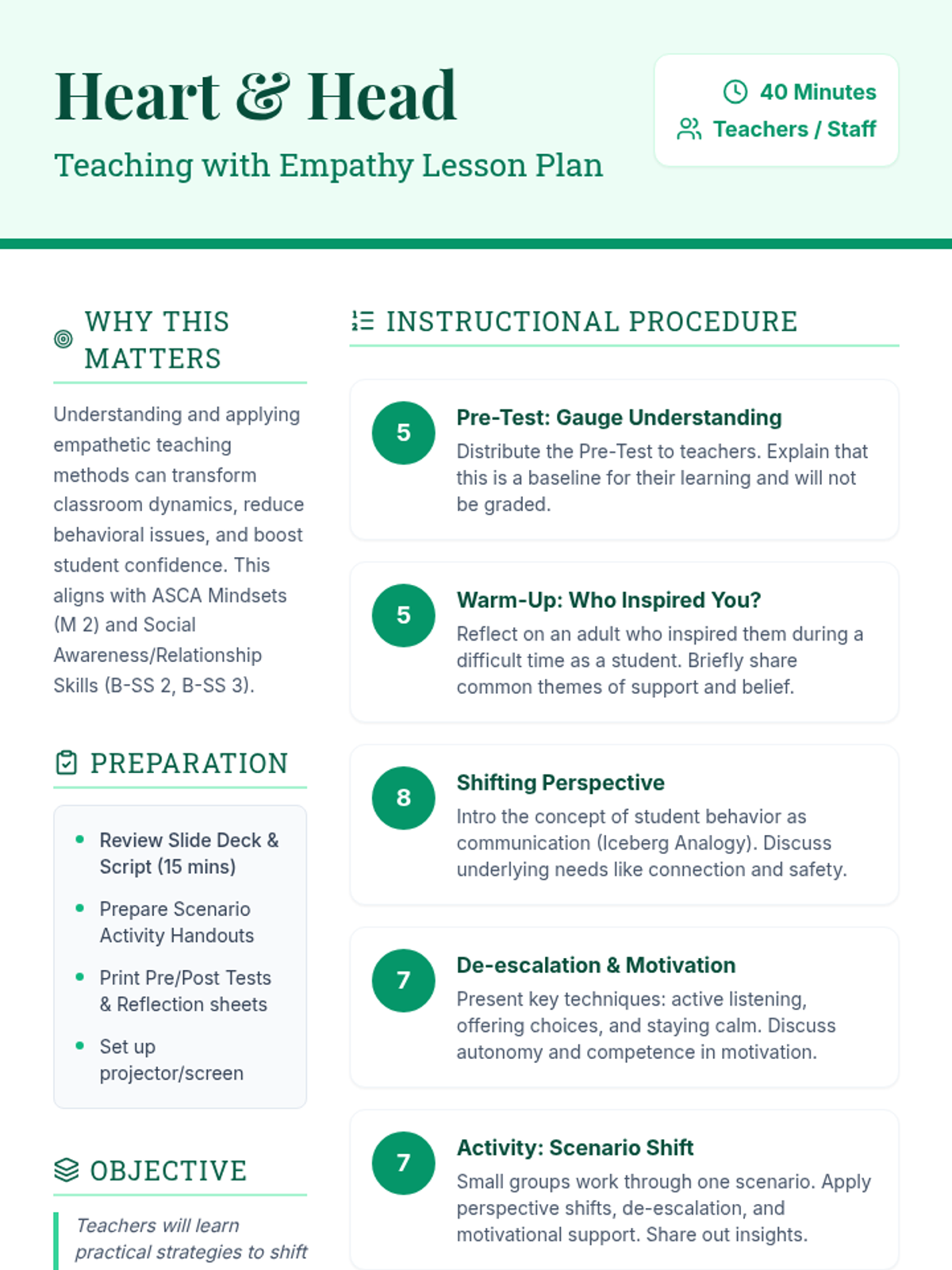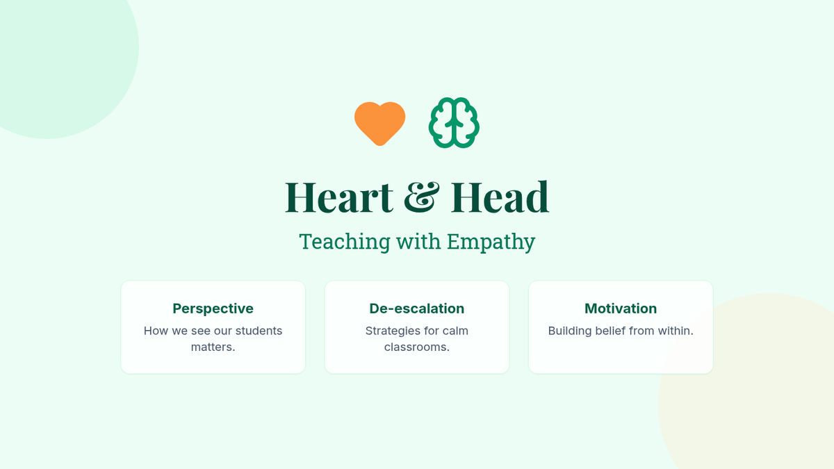 This 30-minute lesson for teachers explores shifting perspectives toward students, utilizing de-escalation techniques, and fostering intrinsic motivation to empower student self-belief. It combines personal reflection with practical classroom strategies.