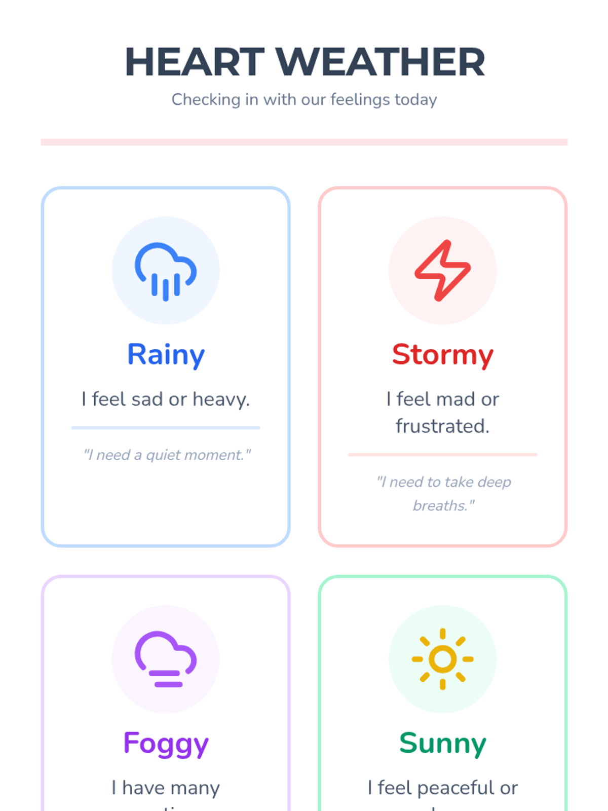 A foundational social-emotional learning lesson for kindergarteners to identify and categorize feelings using the four color zones. Students will explore scenarios, match emotions, and practice physical sorting of feelings.