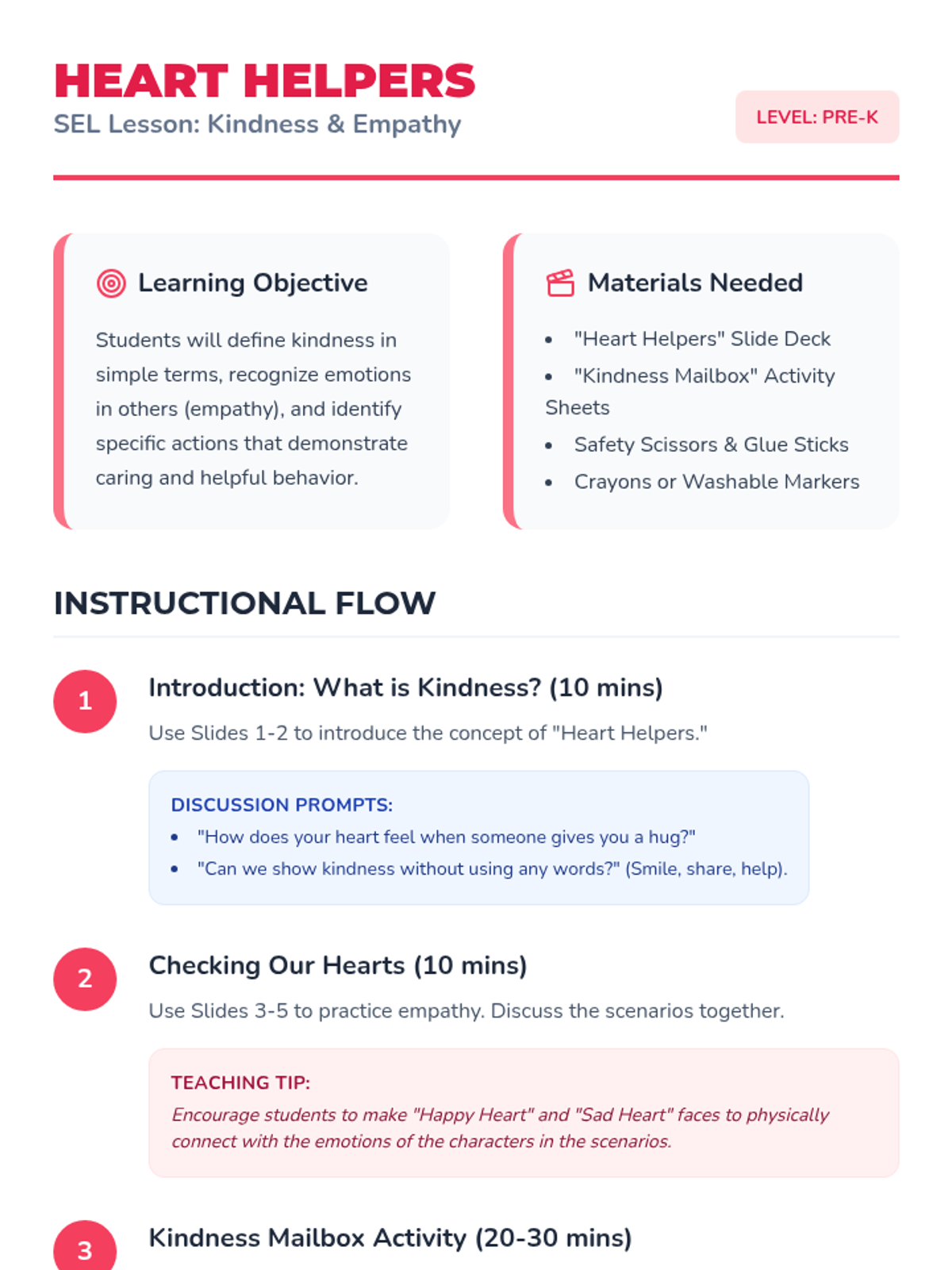 A heart-warming Pre-K lesson focused on teaching kindness and empathy through Valentine's Day themes. Includes a slide deck for group discussion and a cut-and-paste sorting activity.