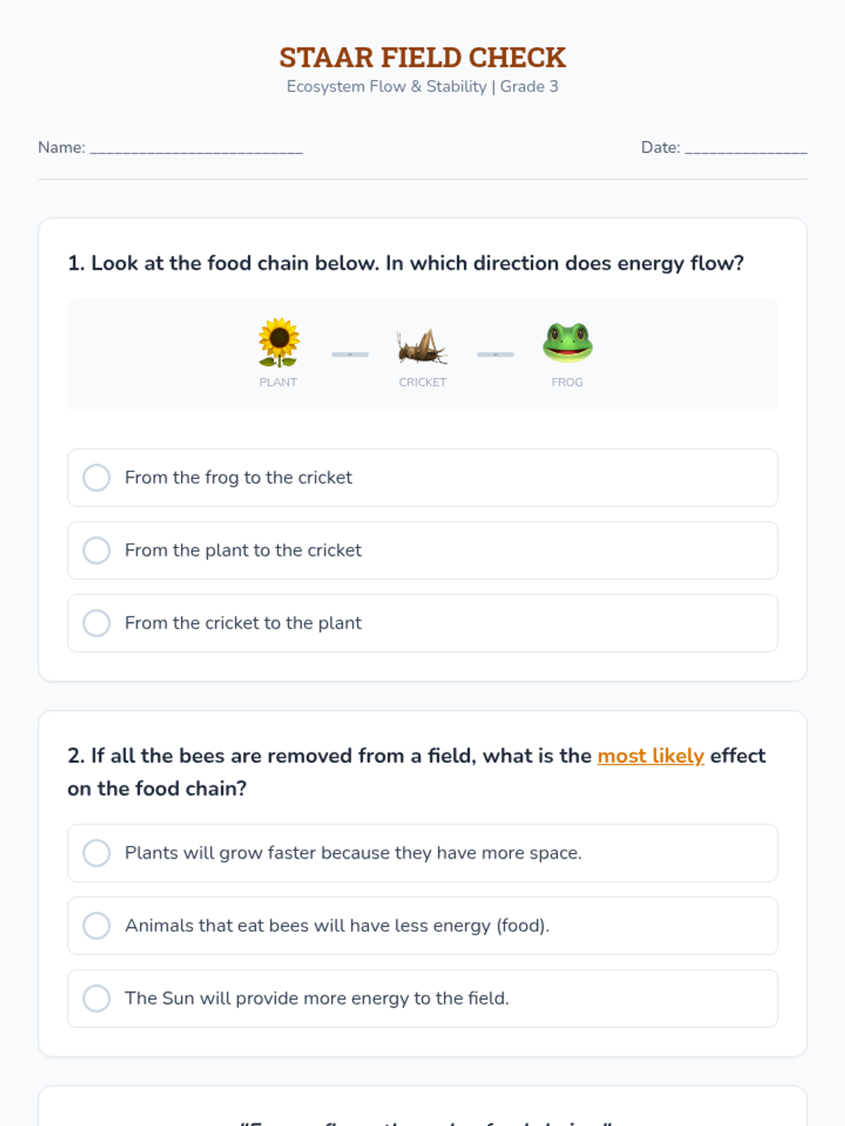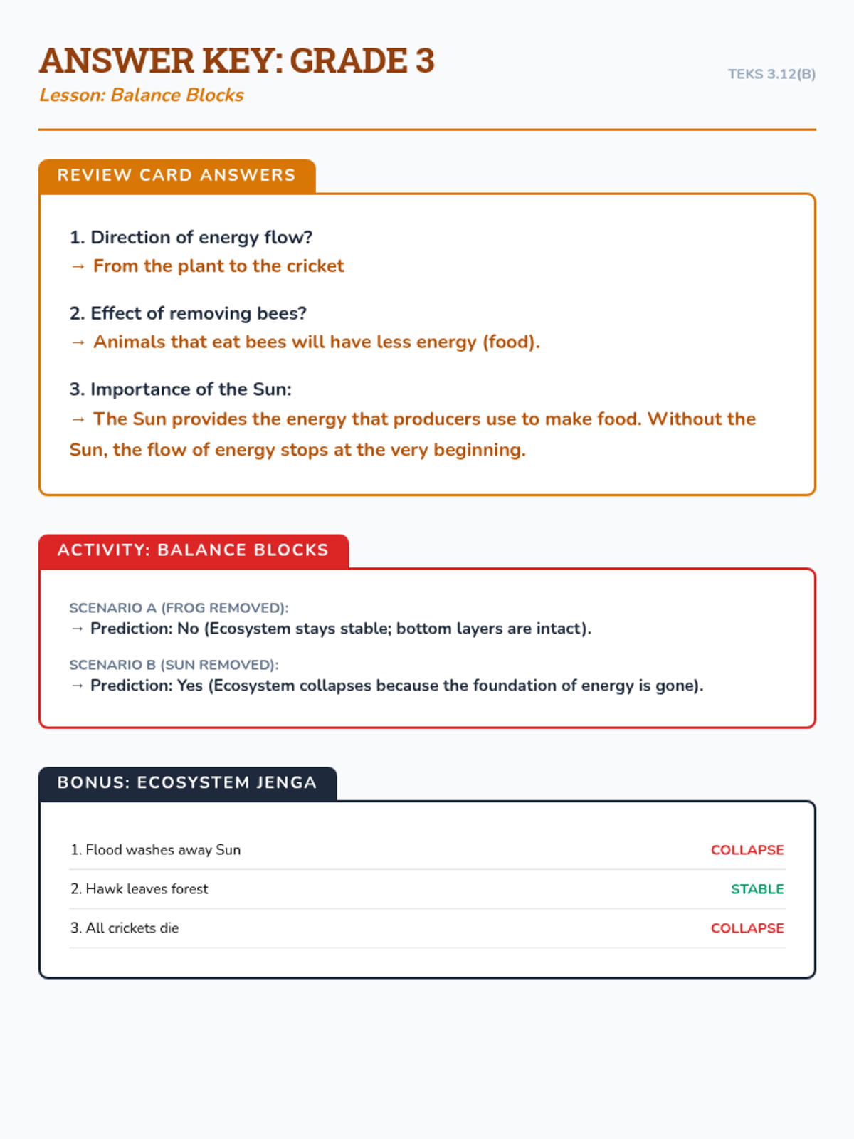 Acting as Field Ecologists, students build cup-stack models of energy flow and test the stability of their ecosystems when key species like bees or frogs are removed.