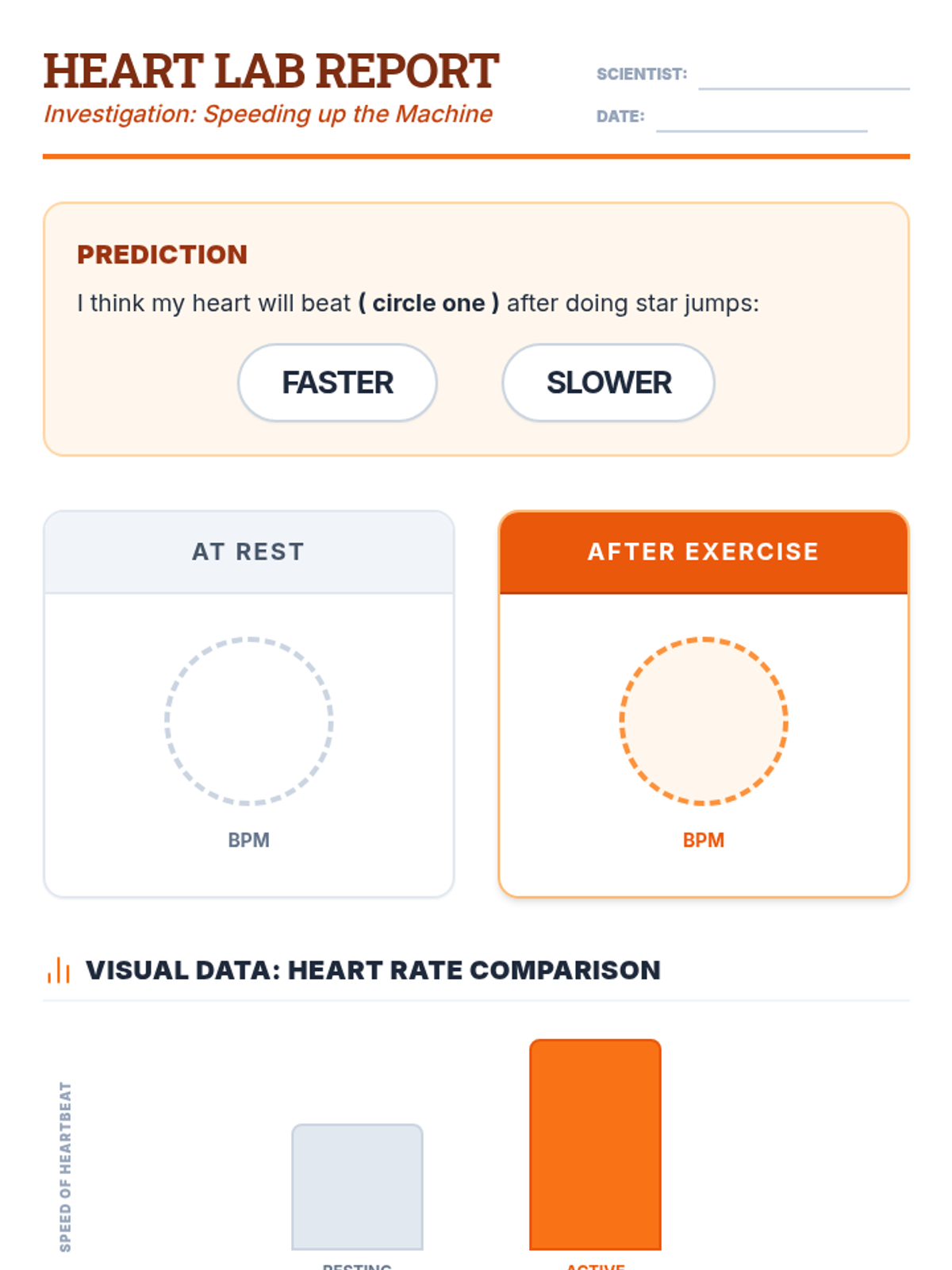 Students investigate how heart rate changes during exercise and conclude that the circulatory system speeds up to deliver energy.