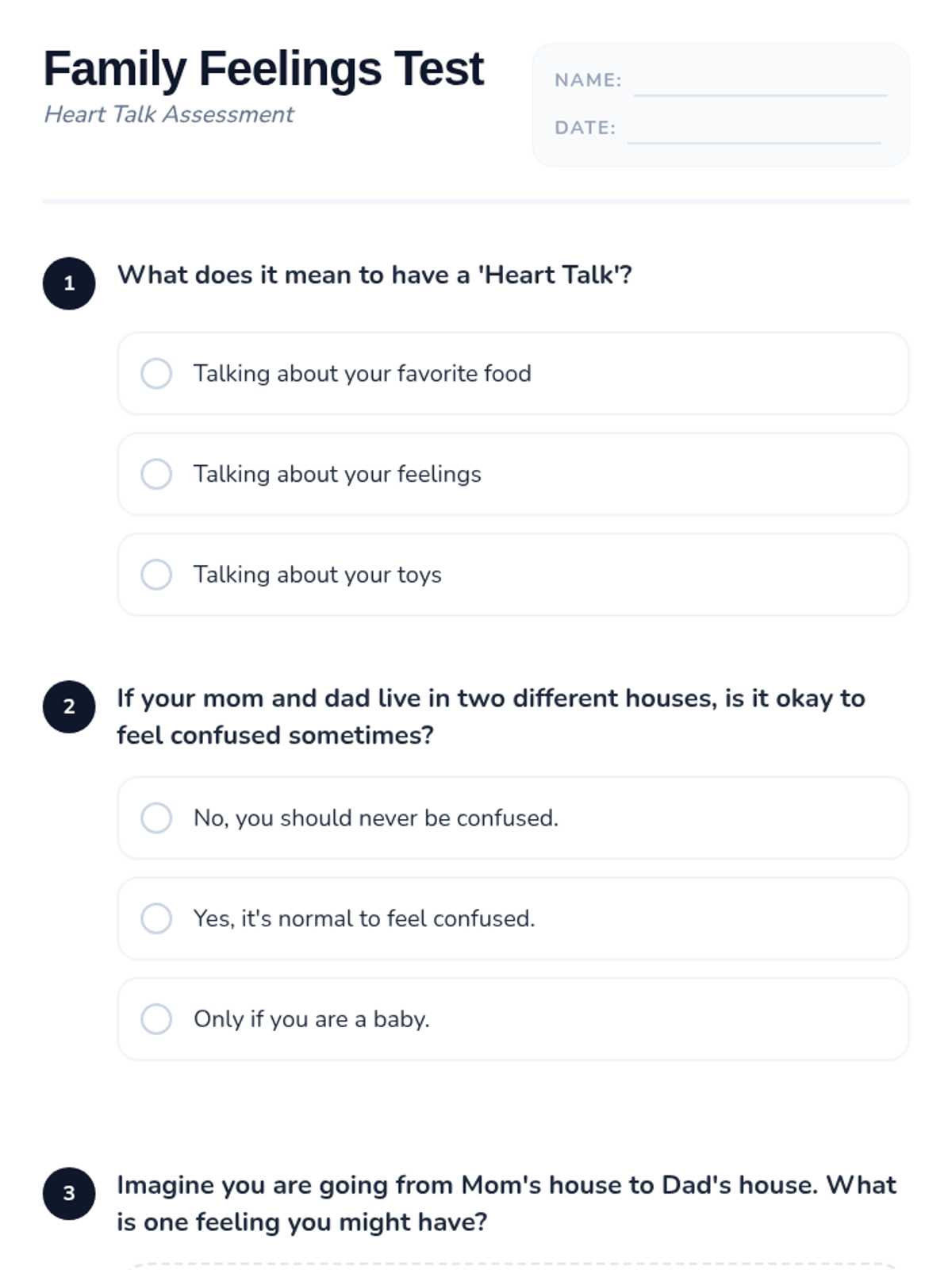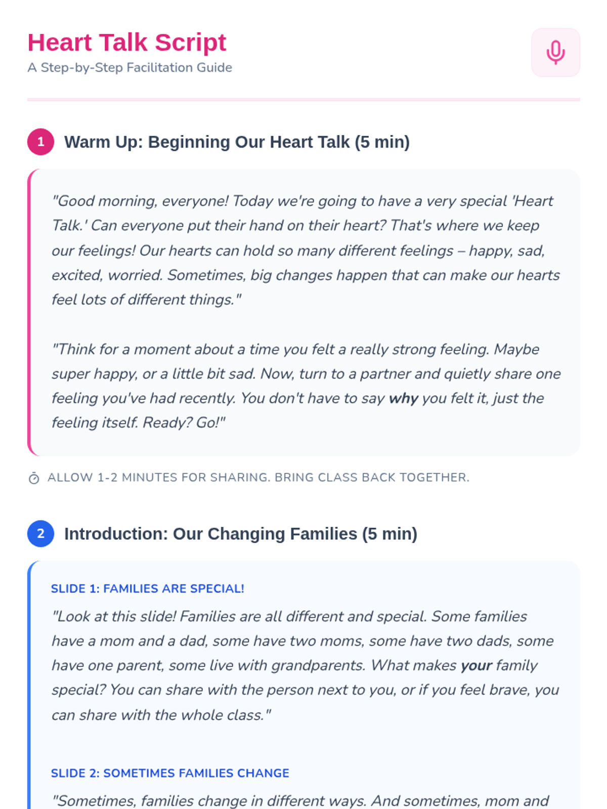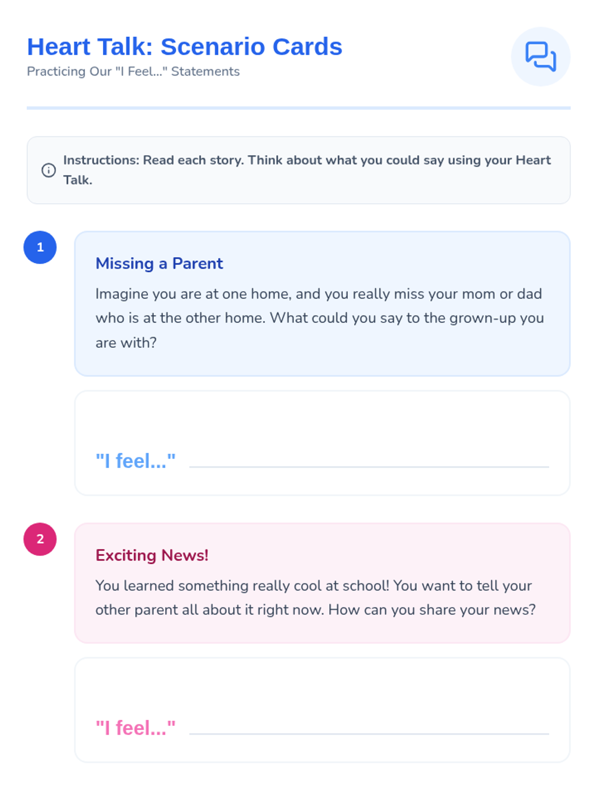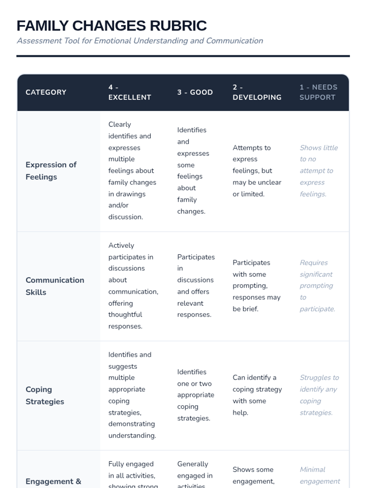 This 30-minute lesson for 1st graders helps students explore and express their thoughts and feelings about parental divorce and changes in family dynamics, introducing coping and communication strategies for navigating two homes.