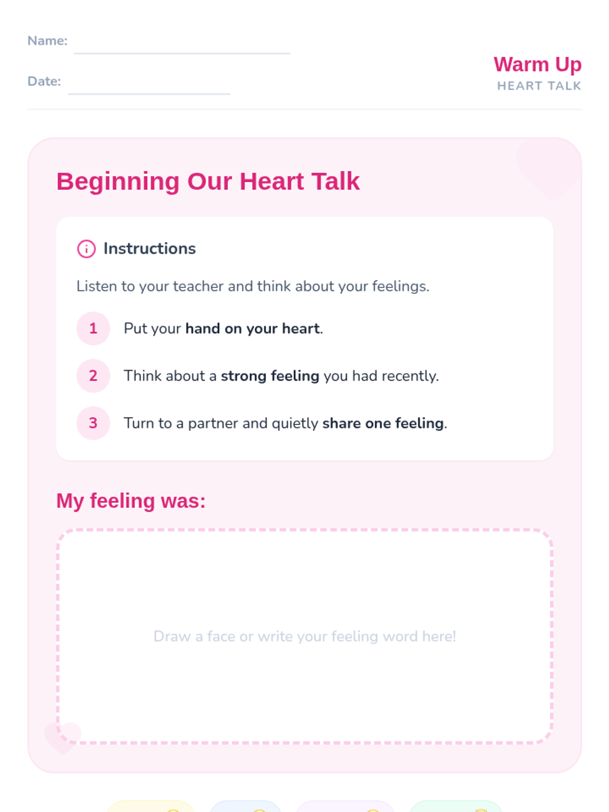 A lesson for K-2 students on interpreting non-verbal social cues using a traffic light metaphor. Students learn to recognize 'Green' (open/ready), 'Yellow' (cautious/check-in), and 'Red' (stop/need space) signals in their peers, especially during high-energy transitions.