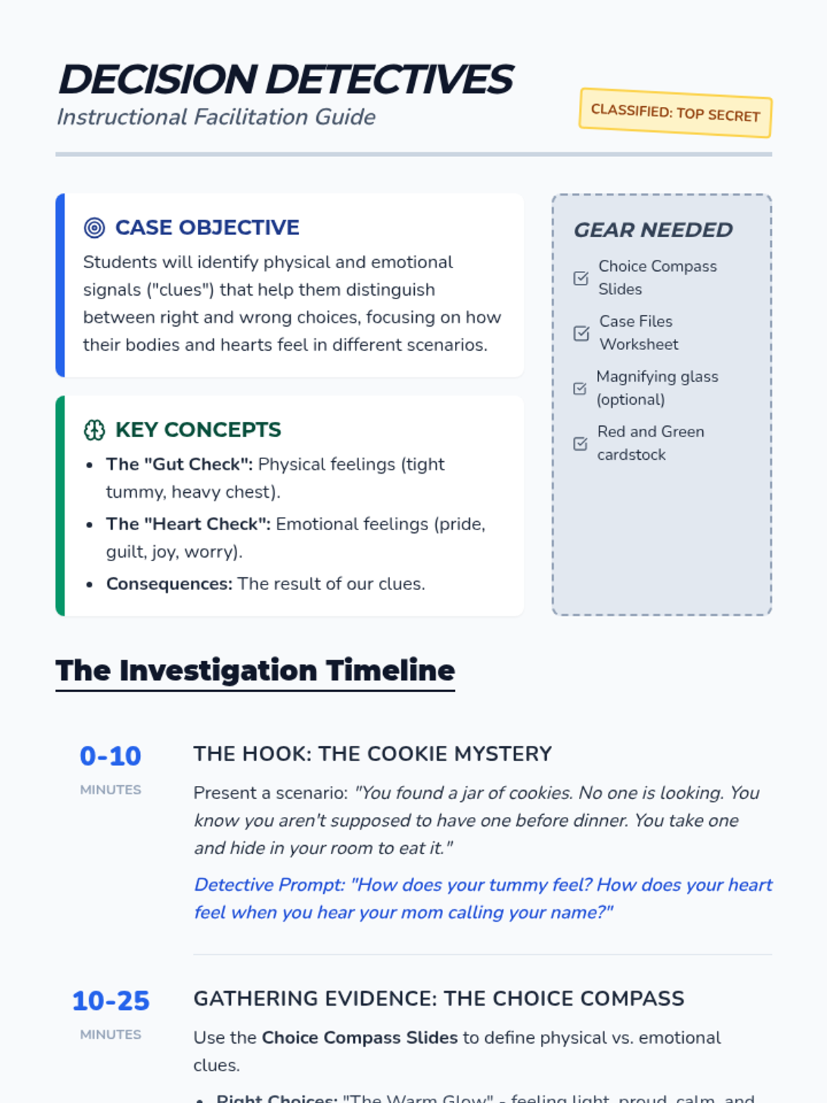 A fast-paced, 15-minute session teaching 3rd-grade girls the power of active listening through visual mapping and drawing.