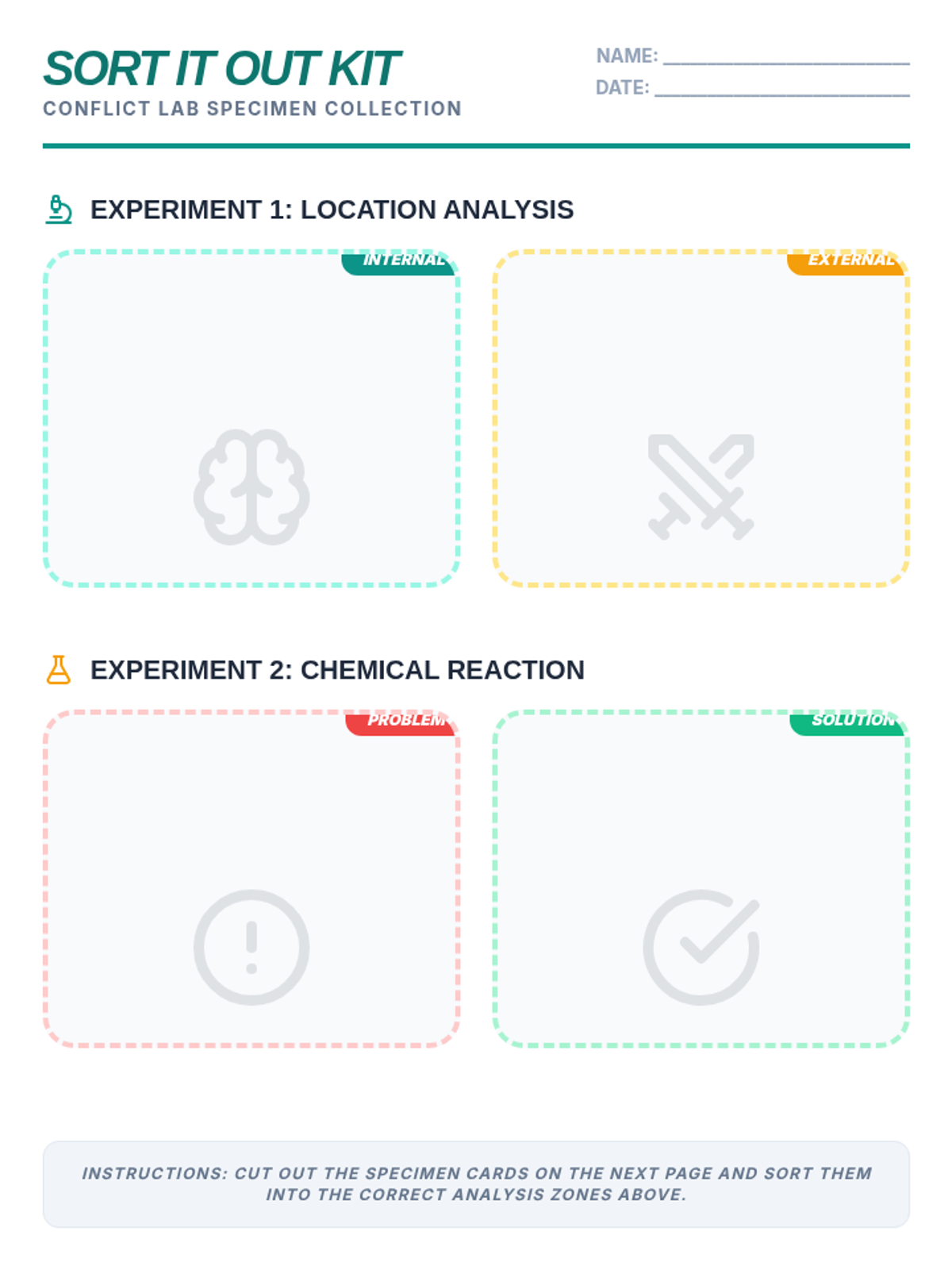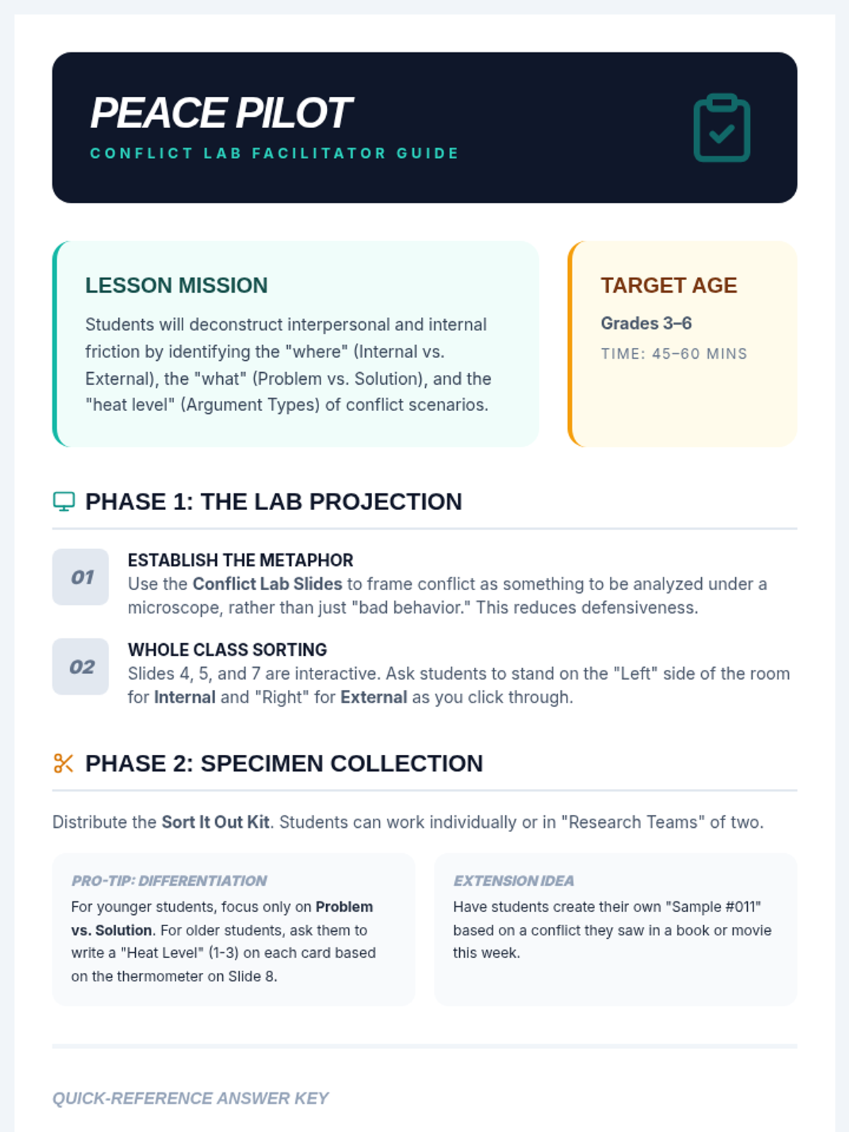 A dynamic lesson designed to help students identify and categorize different types of conflict, distinguish between problems and solutions, and understand internal versus external struggles.