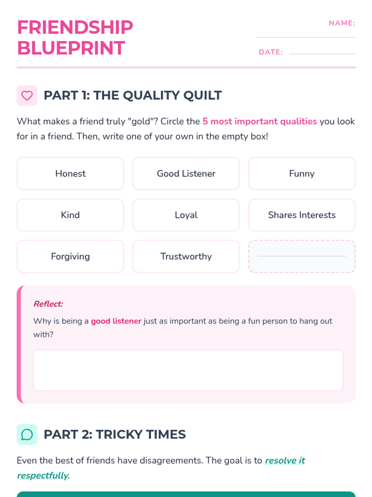 This lesson focuses on building healthy relationships for 4th-grade girls by identifying positive friendship qualities and practicing respectful conflict resolution through scenarios and role-play.