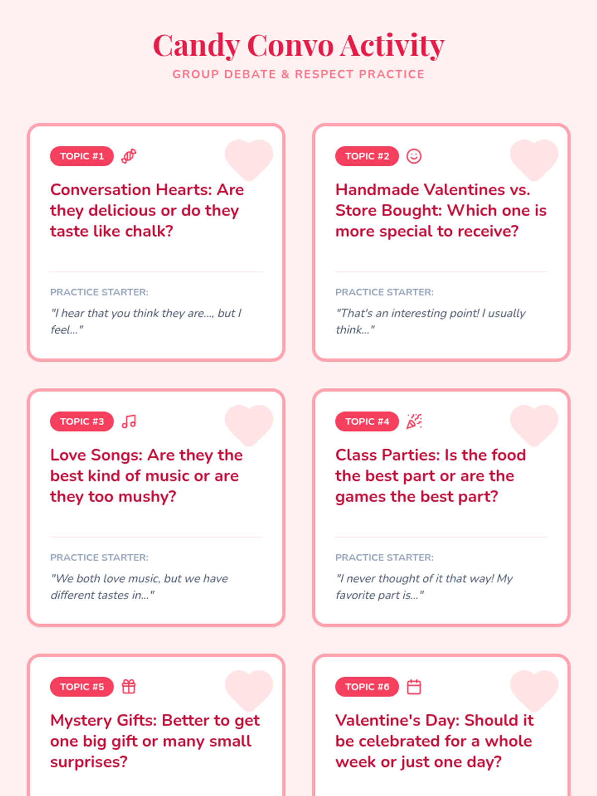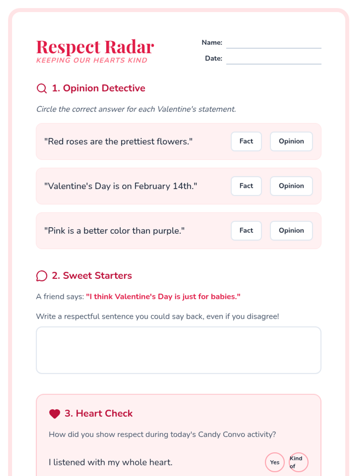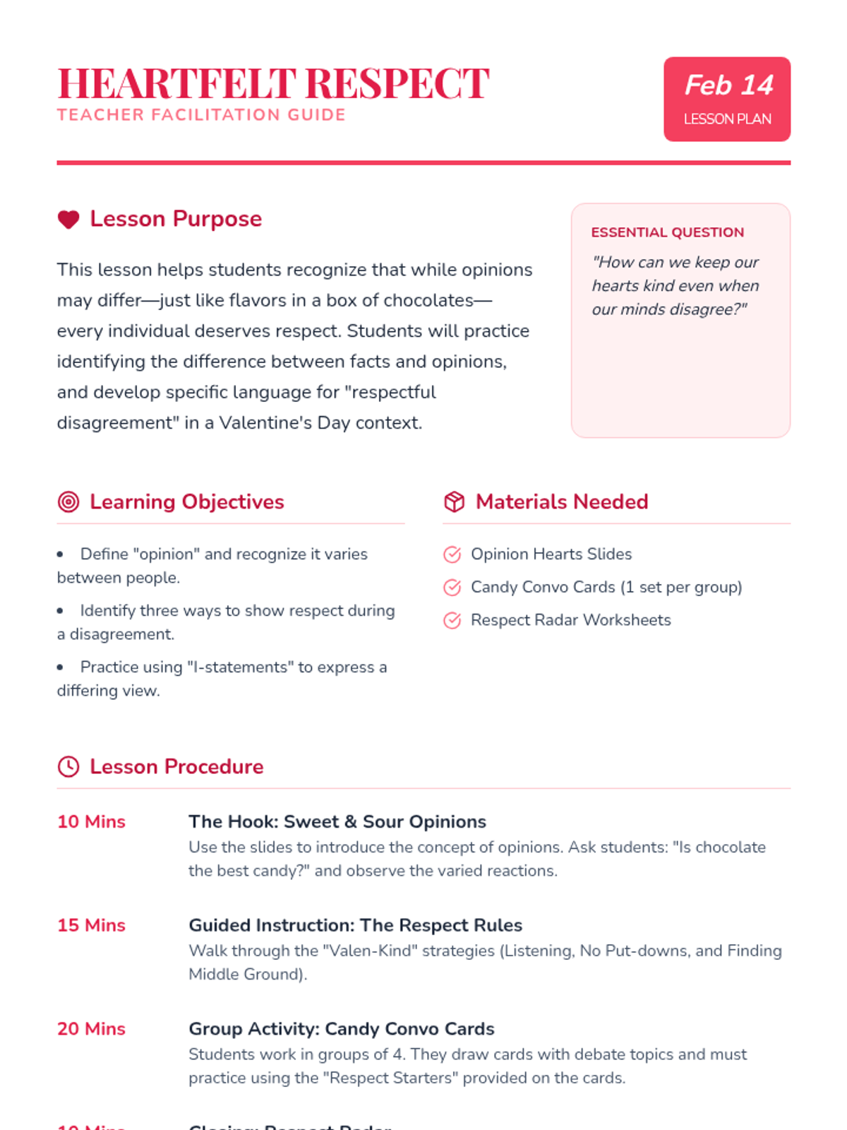 A Valentine's Day lesson focused on navigating and respecting diverse peer opinions through empathy and constructive communication.