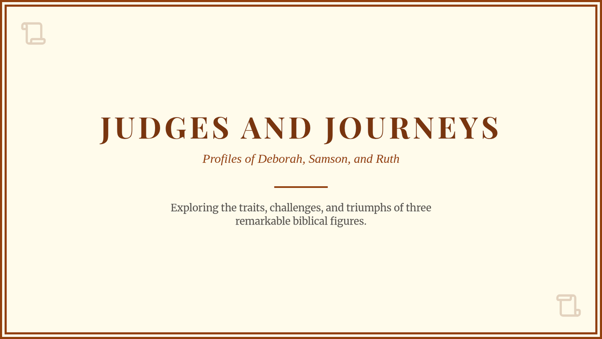 A lesson exploring the lives of Deborah, Samson, and Ruth, focusing on their character traits, the challenges they faced, and their significance in biblical history.
