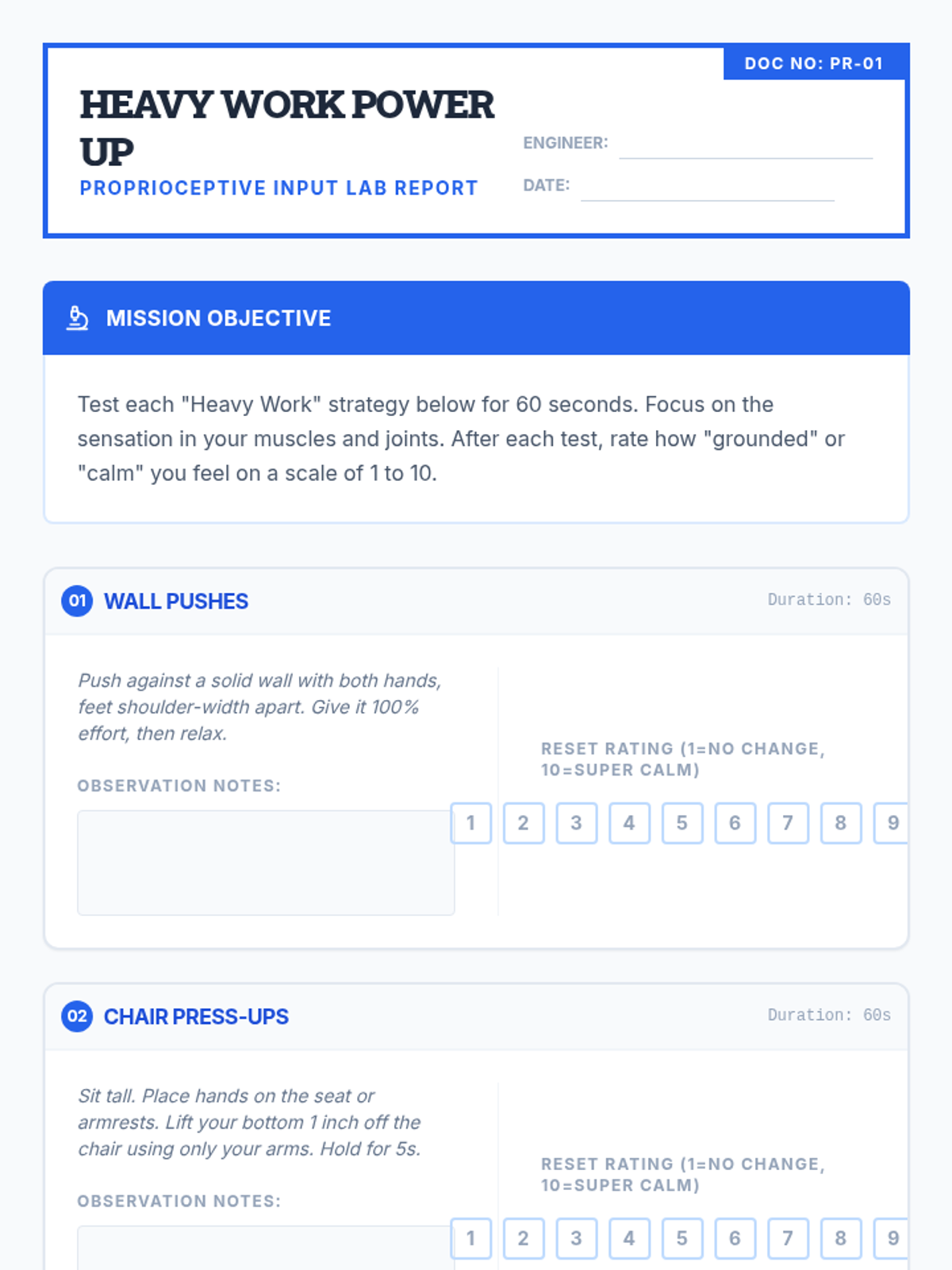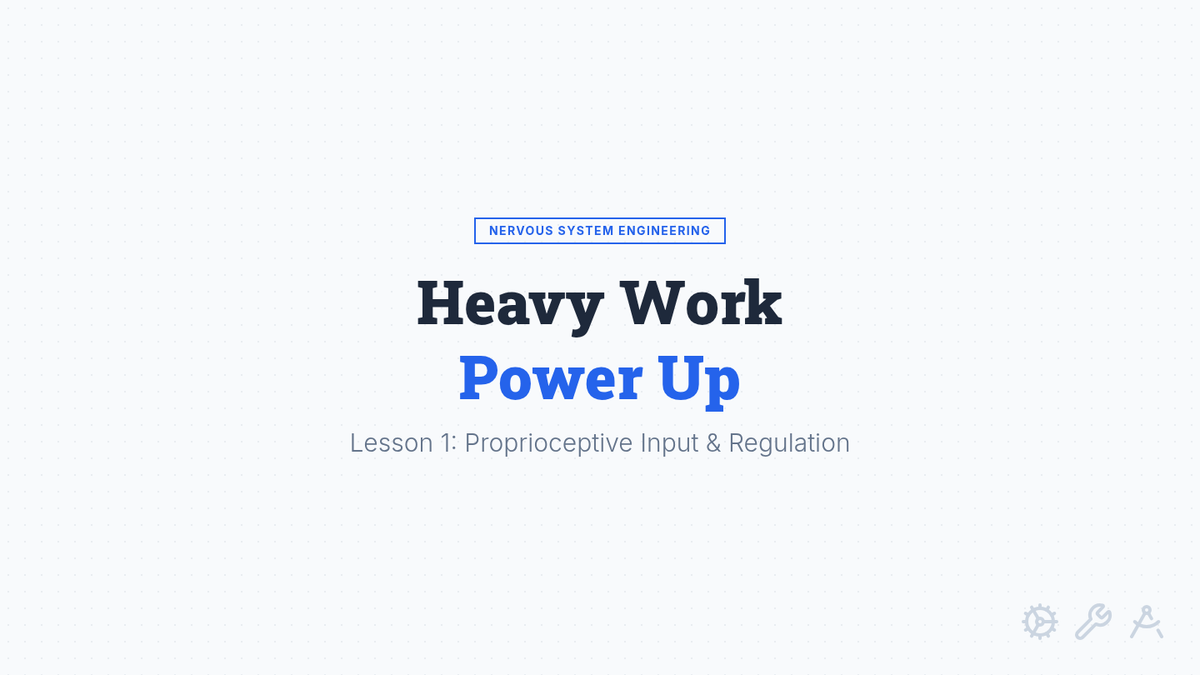 Students explore how heavy work and deep pressure (proprioception) can organize the nervous system, testing wall pushes, chair press-ups, and weighted items.