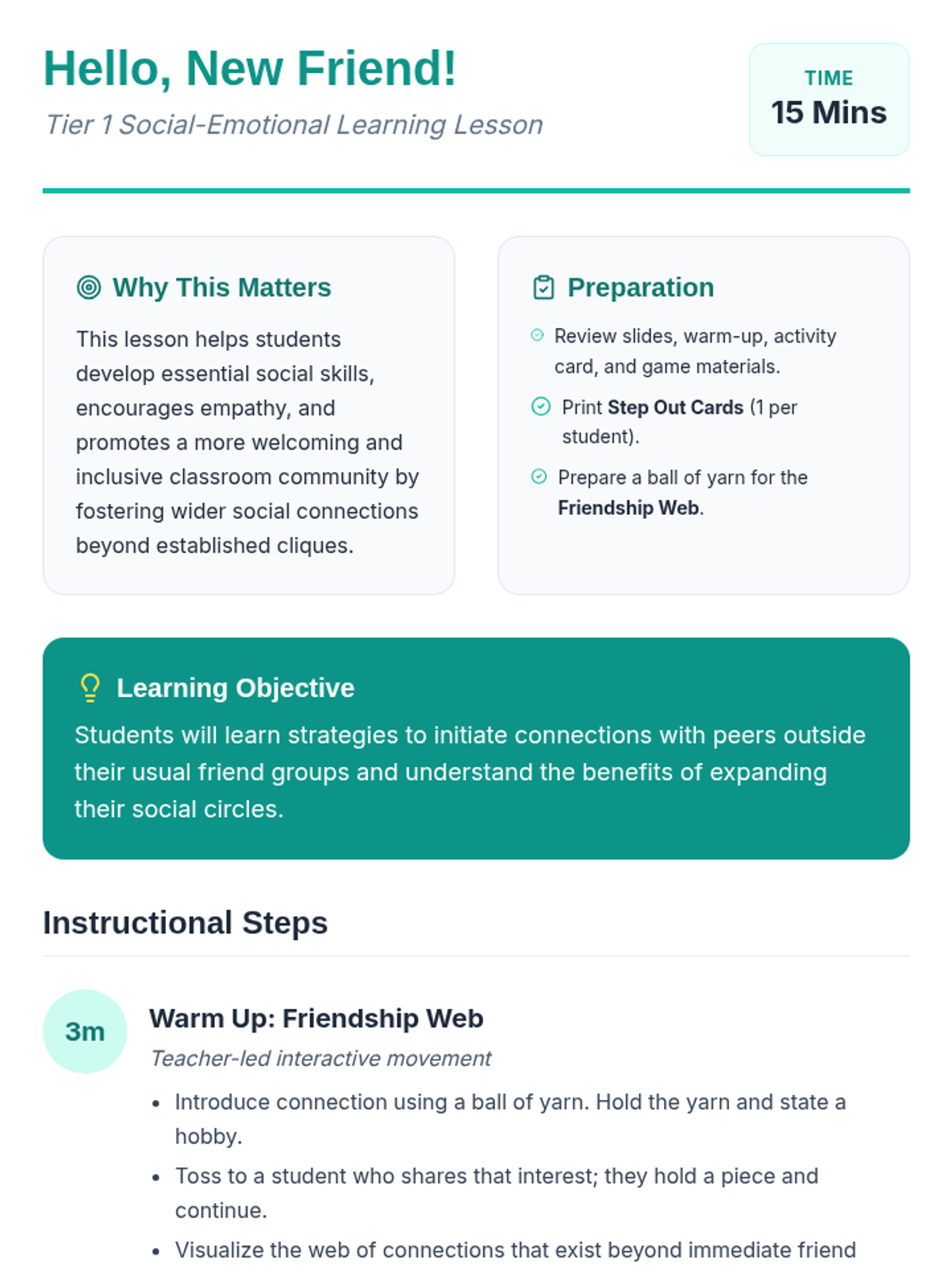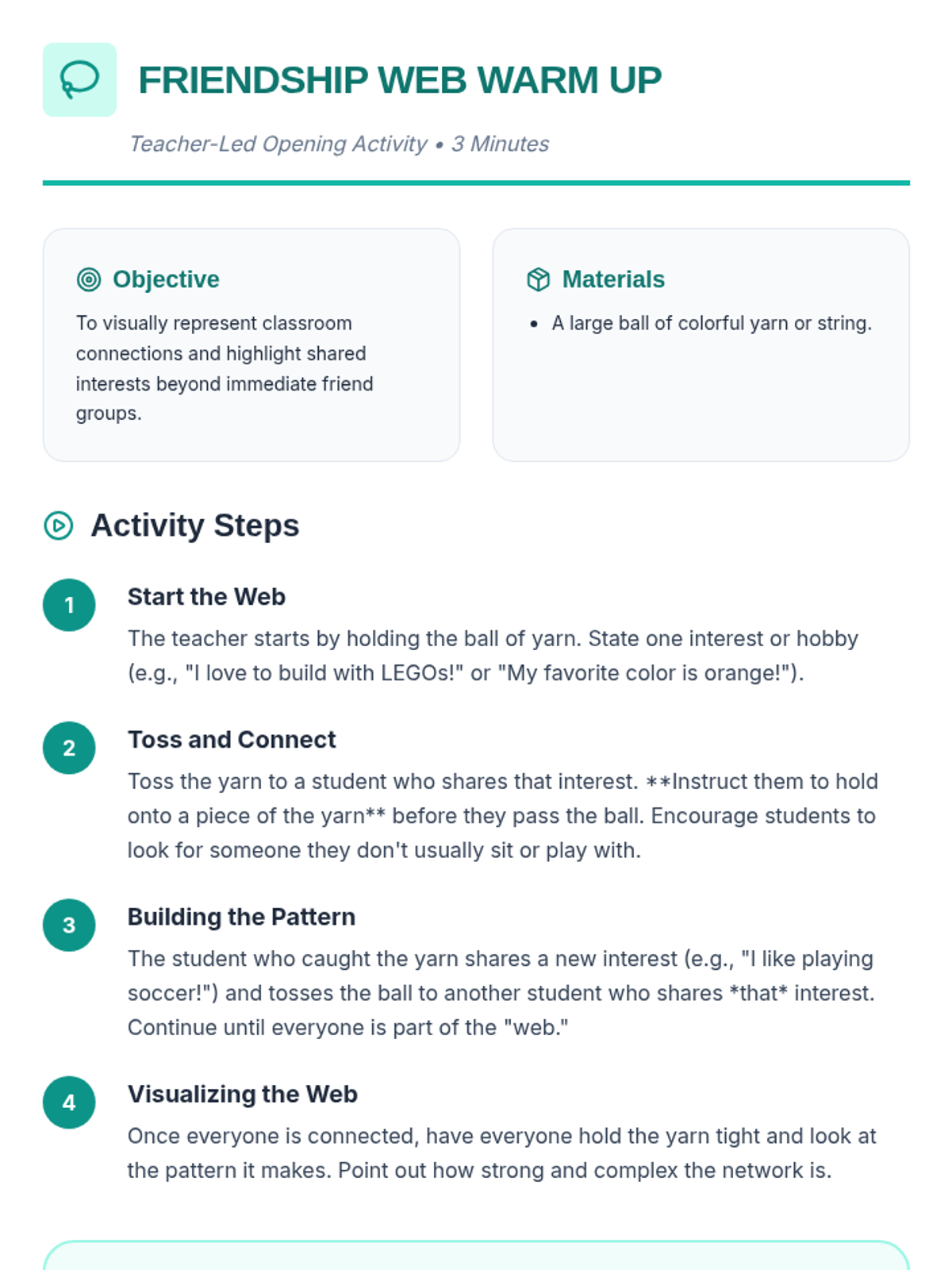 A 15-minute 3rd-grade lesson designed to help students expand their social circles by stepping out of their comfort zones to connect with new peers.