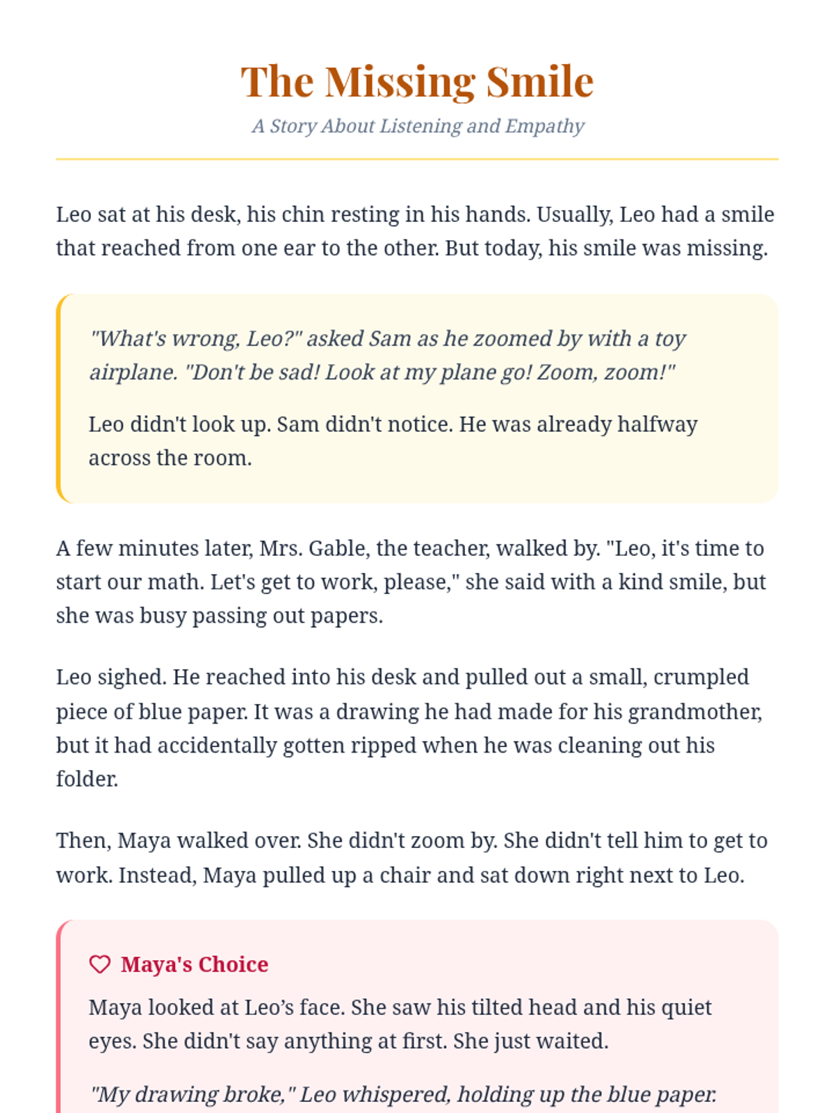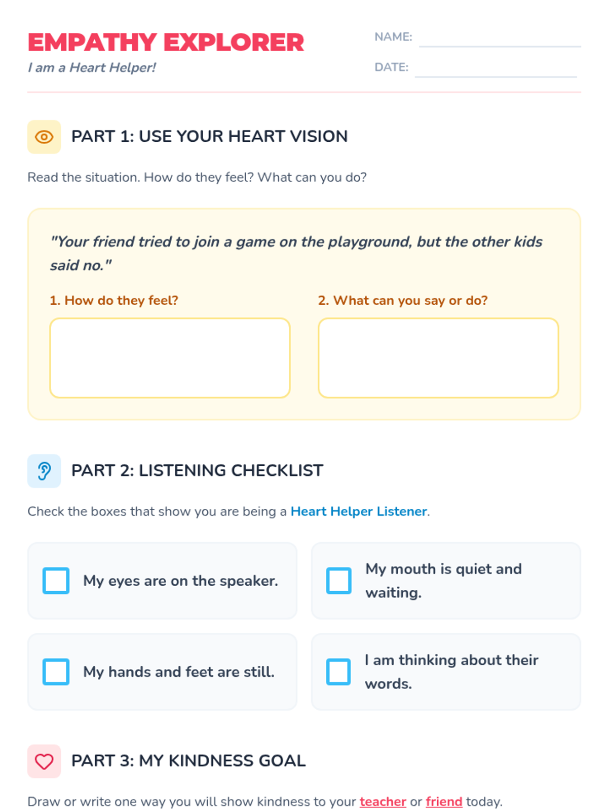 A quick 20-minute activity designed to help 3rd graders recognize and respond to the feelings of others through relatable real-world scenarios.