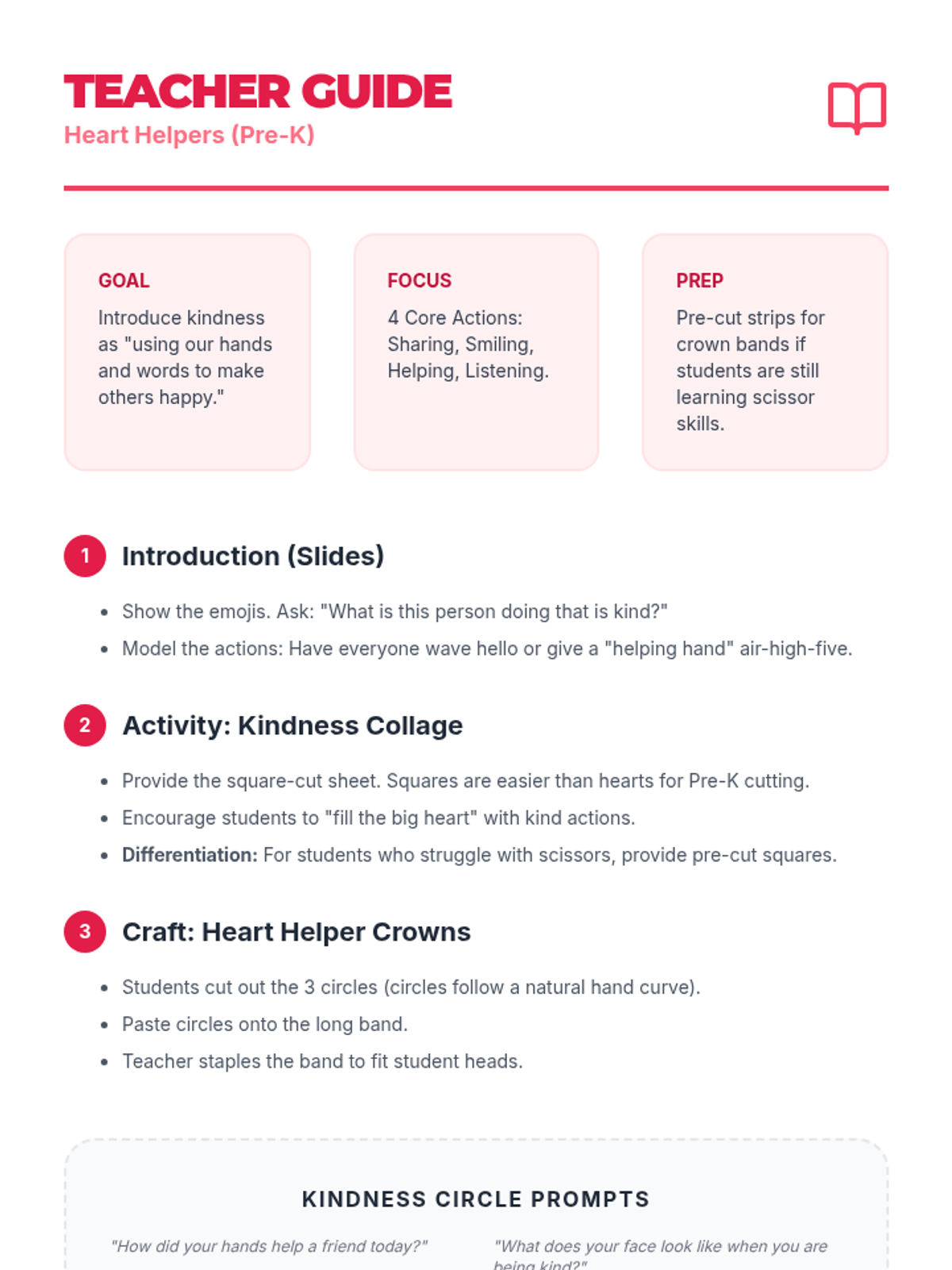 A heart-warming Valentine's themed lesson for Pre-K students focused on practicing kindness through hands-on activities, sharing, and helpful actions. Students will explore how their hands and words can make others feel loved and valued.