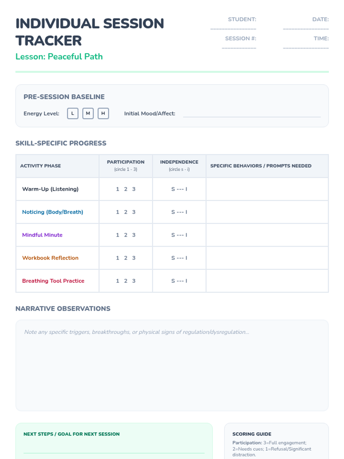 A 20-minute guided session for school or clinical counselors to help students identify anxiety triggers and practice three immediate calming techniques.
