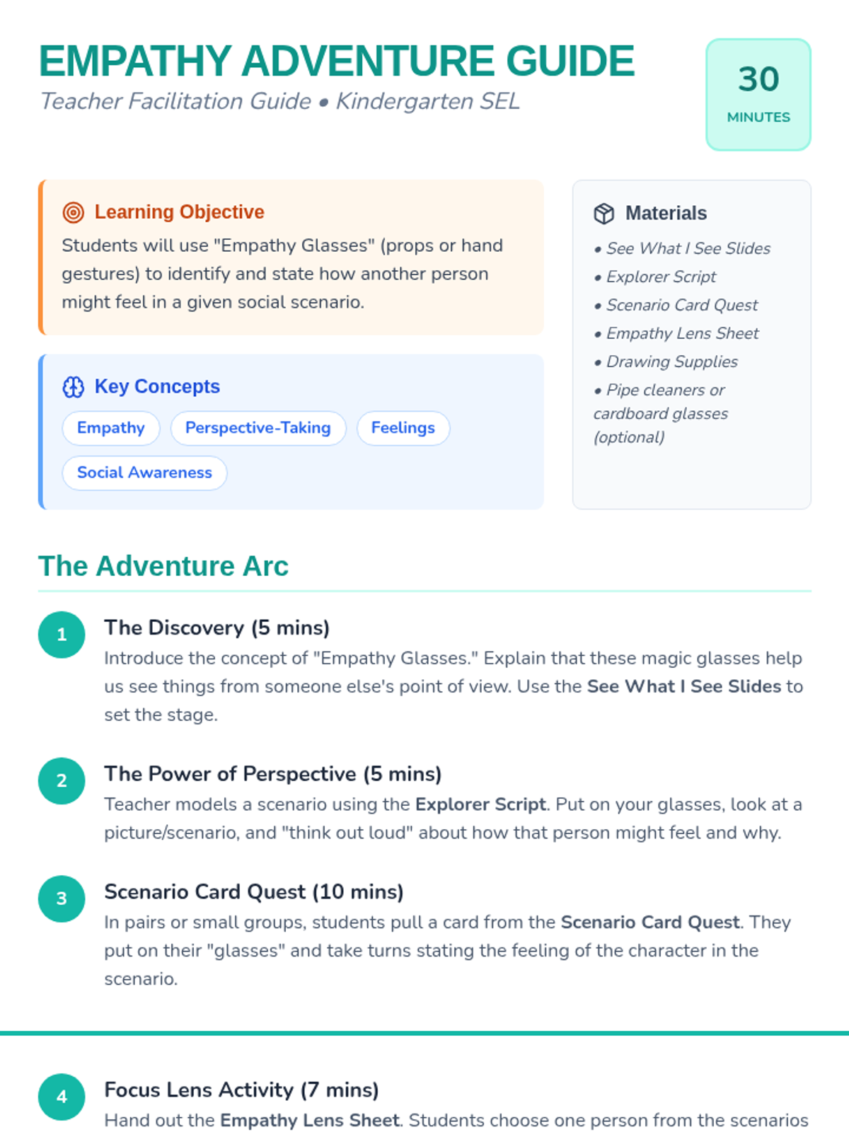 A high-energy, hands-on social-emotional learning lesson where Kindergarteners use imaginary 'Empathy Glasses' to explore the feelings of others and practice perspective-taking.