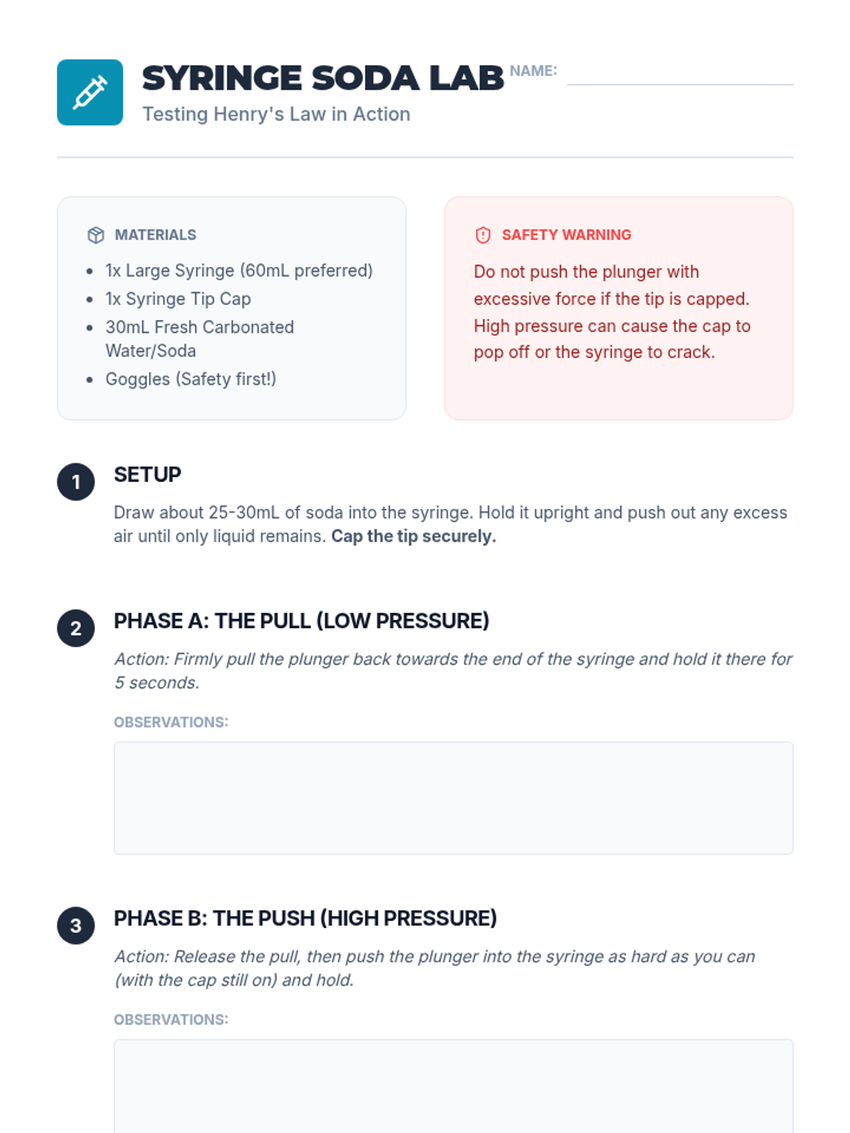 An exploration of Henry's Law through syringe-based labs, demonstrating how pressure forces gases into solution.