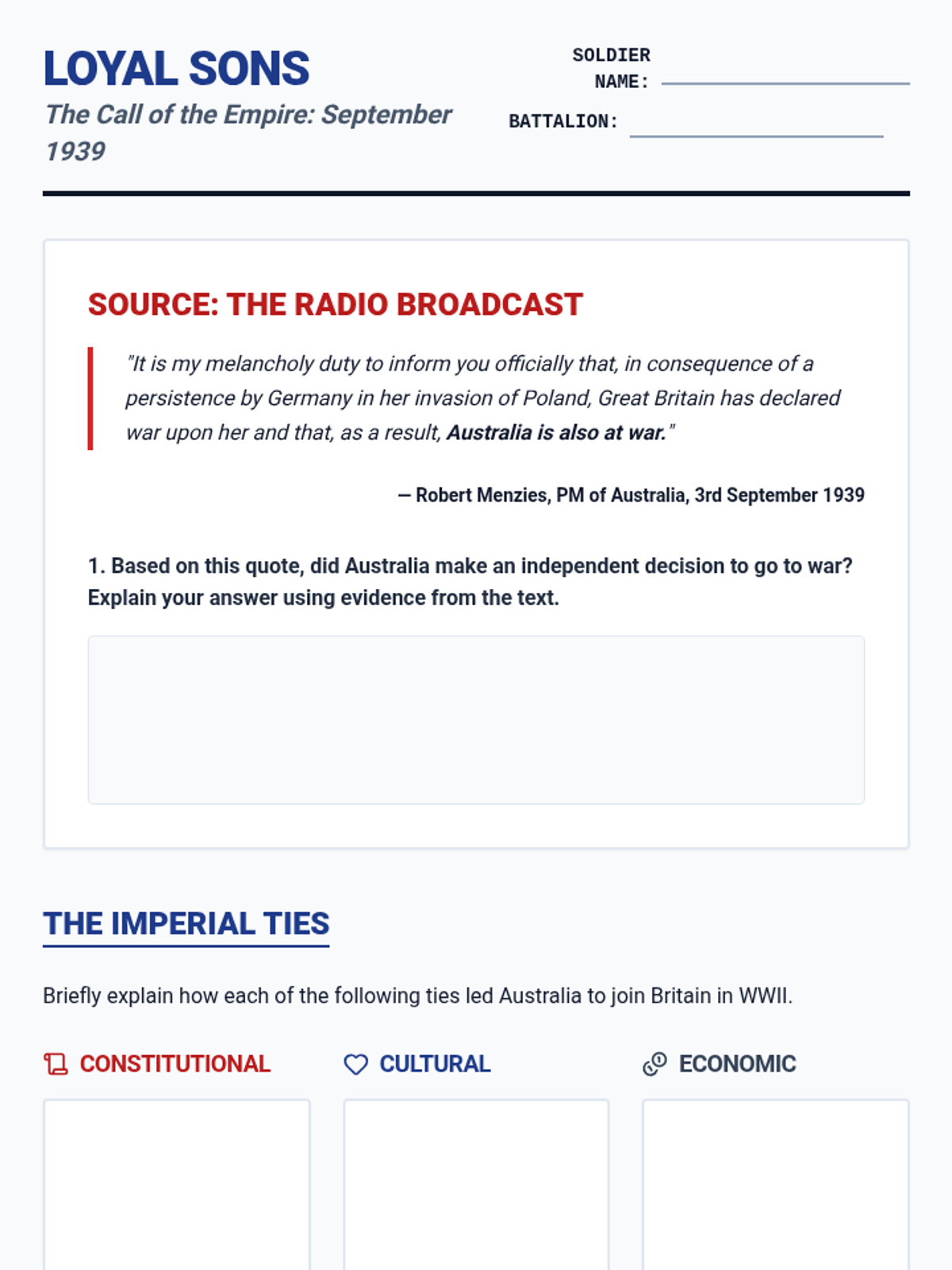 An exploration of Australia's entry into World War II, focusing on the constitutional and cultural ties to the British Empire that led to the declaration of war in 1939.