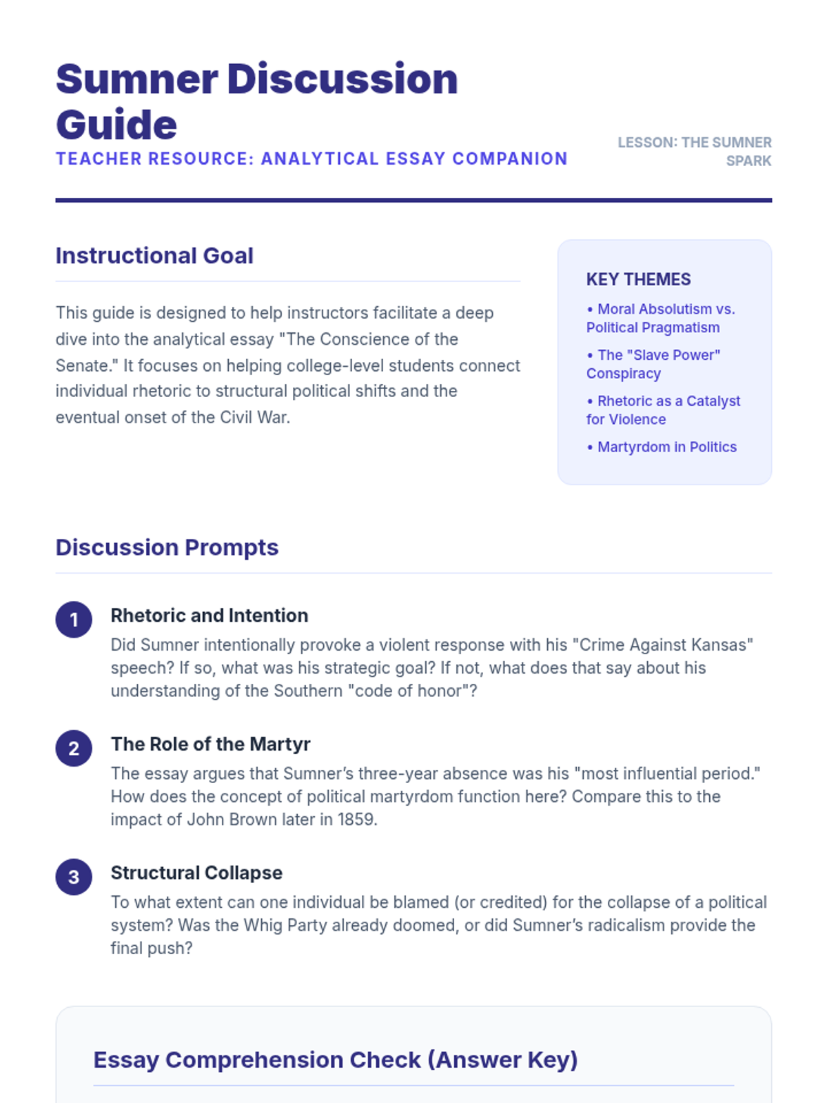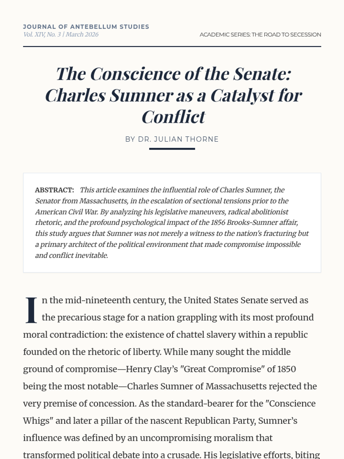 An in-depth exploration of Charles Sumner's role as a radical abolitionist and political catalyst in the years leading up to the American Civil War. This lesson examines his rhetoric, legislative strategies, and the national impact of his physical assault on the Senate floor.