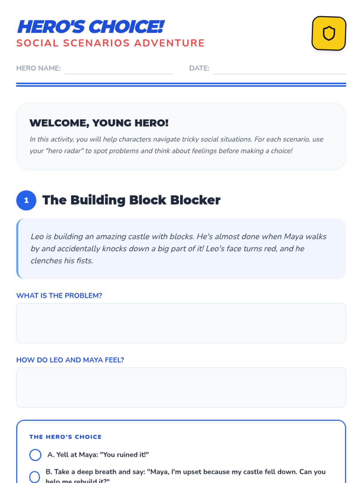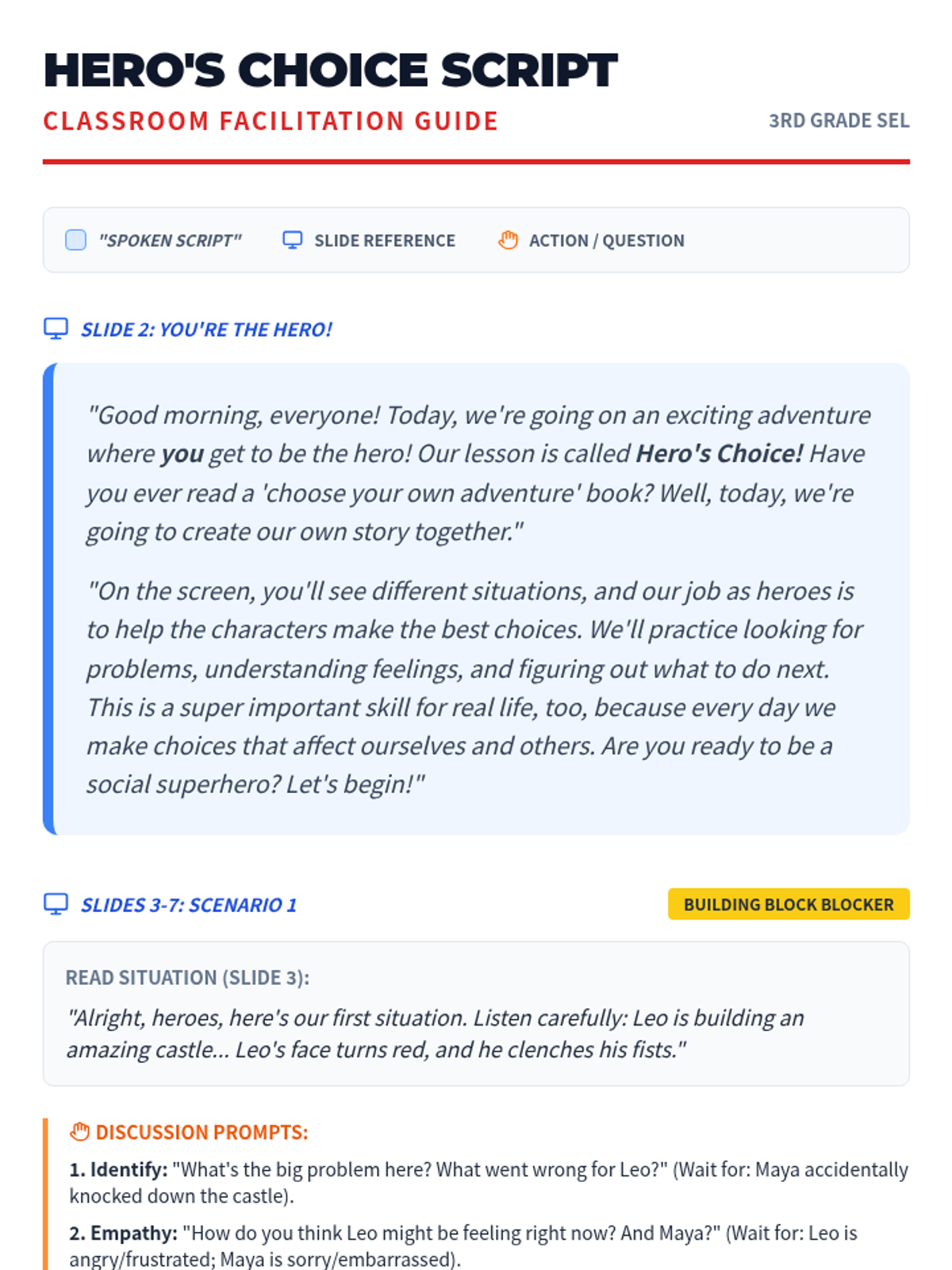 An interactive 30-minute SEL lesson for 3rd graders focusing on problem identification, empathy, and social problem-solving through a choose-your-own-adventure format. Students help characters navigate tricky social situations while practicing coping strategies and reciprocal conversation skills.