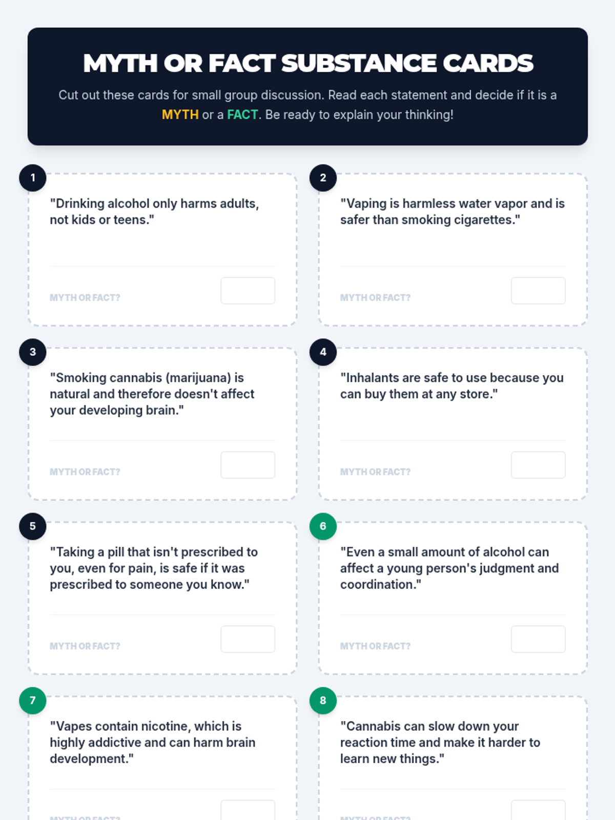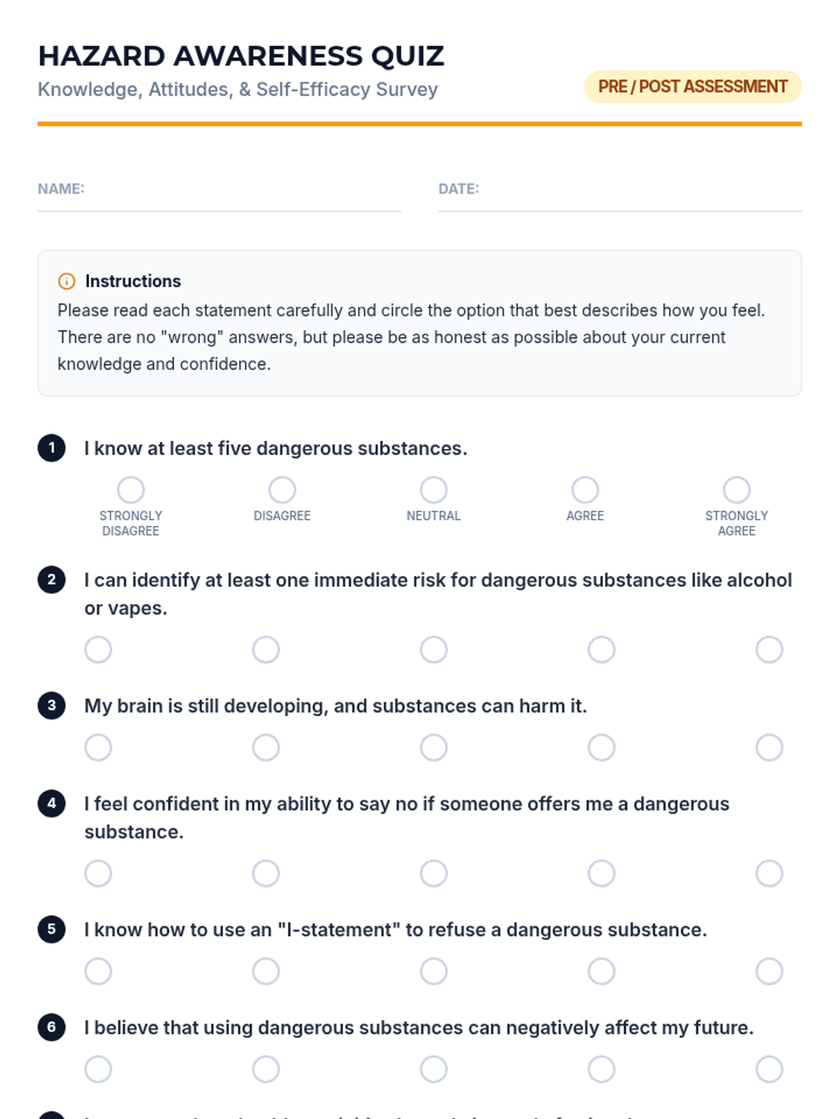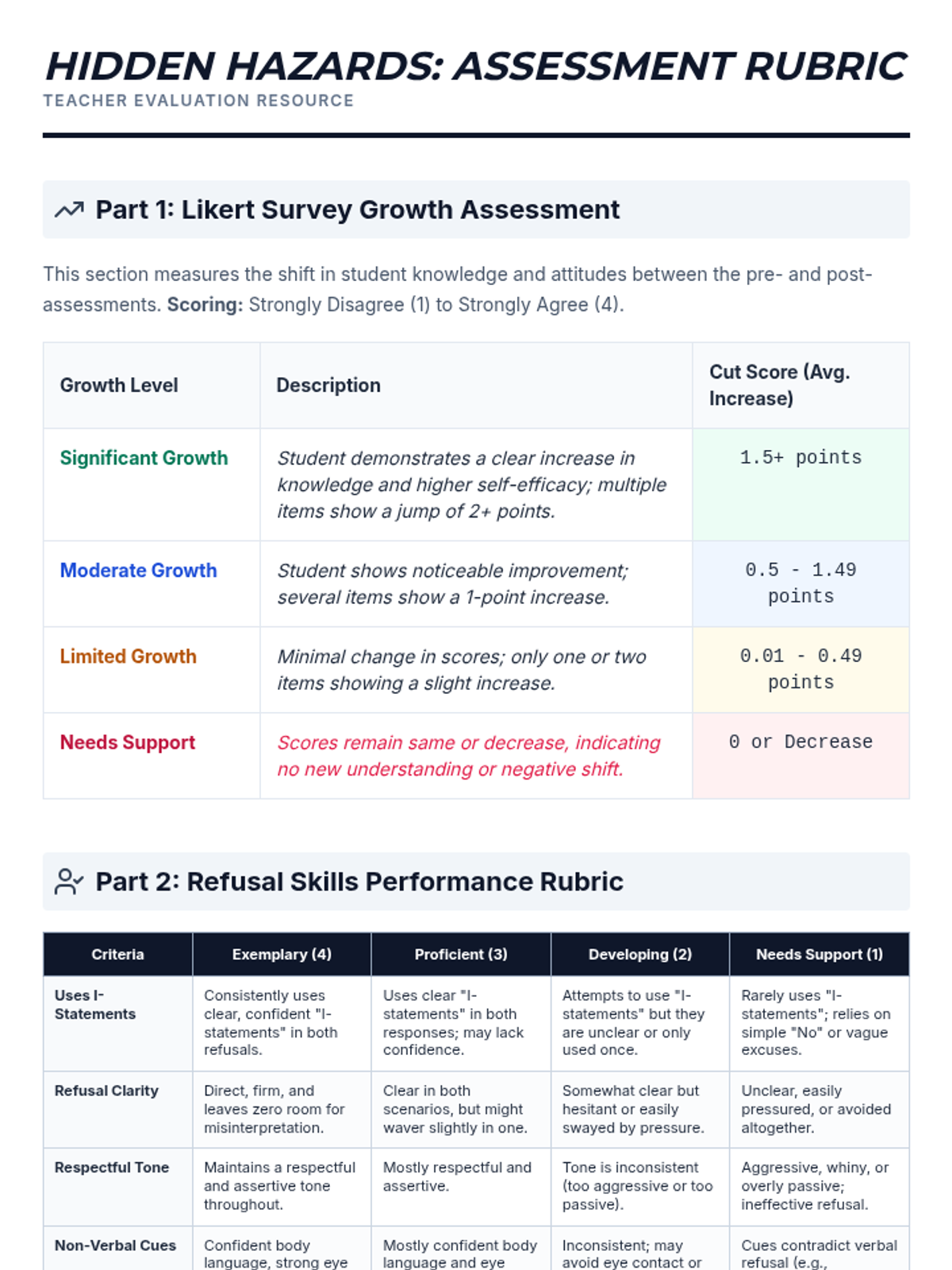 This 45-minute 6th-grade lesson empowers students to understand the immediate risks of dangerous substances and develop practical refusal skills using 'I-statements'. Through interactive myth-busting, role-play, and scenario-based discussion, students learn to navigate peer pressure and commit to healthy, drug-free alternatives.