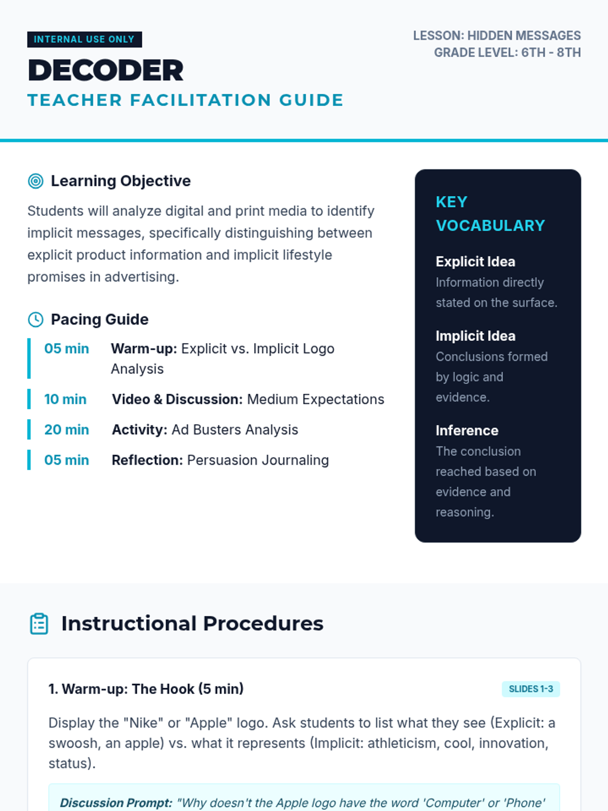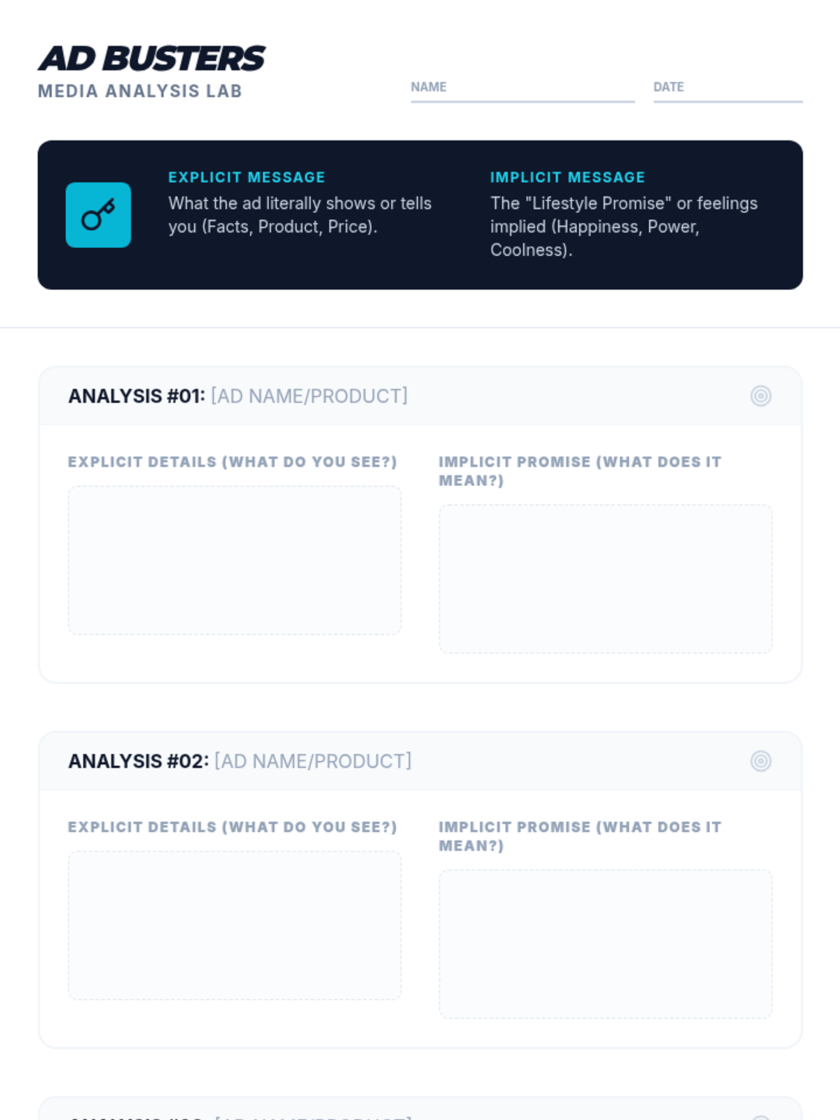 Students will learn to distinguish between explicit and implicit messages in media, specifically focusing on how advertisers use lifestyle promises to persuade consumers.