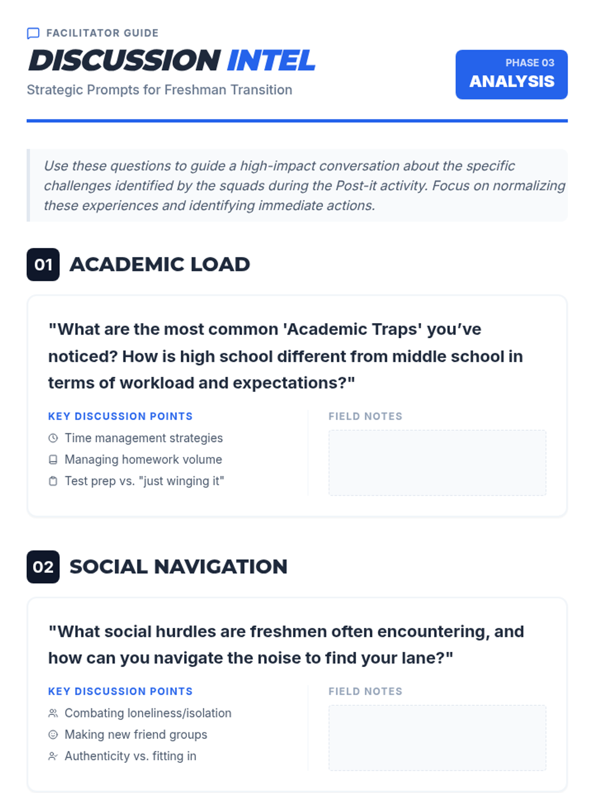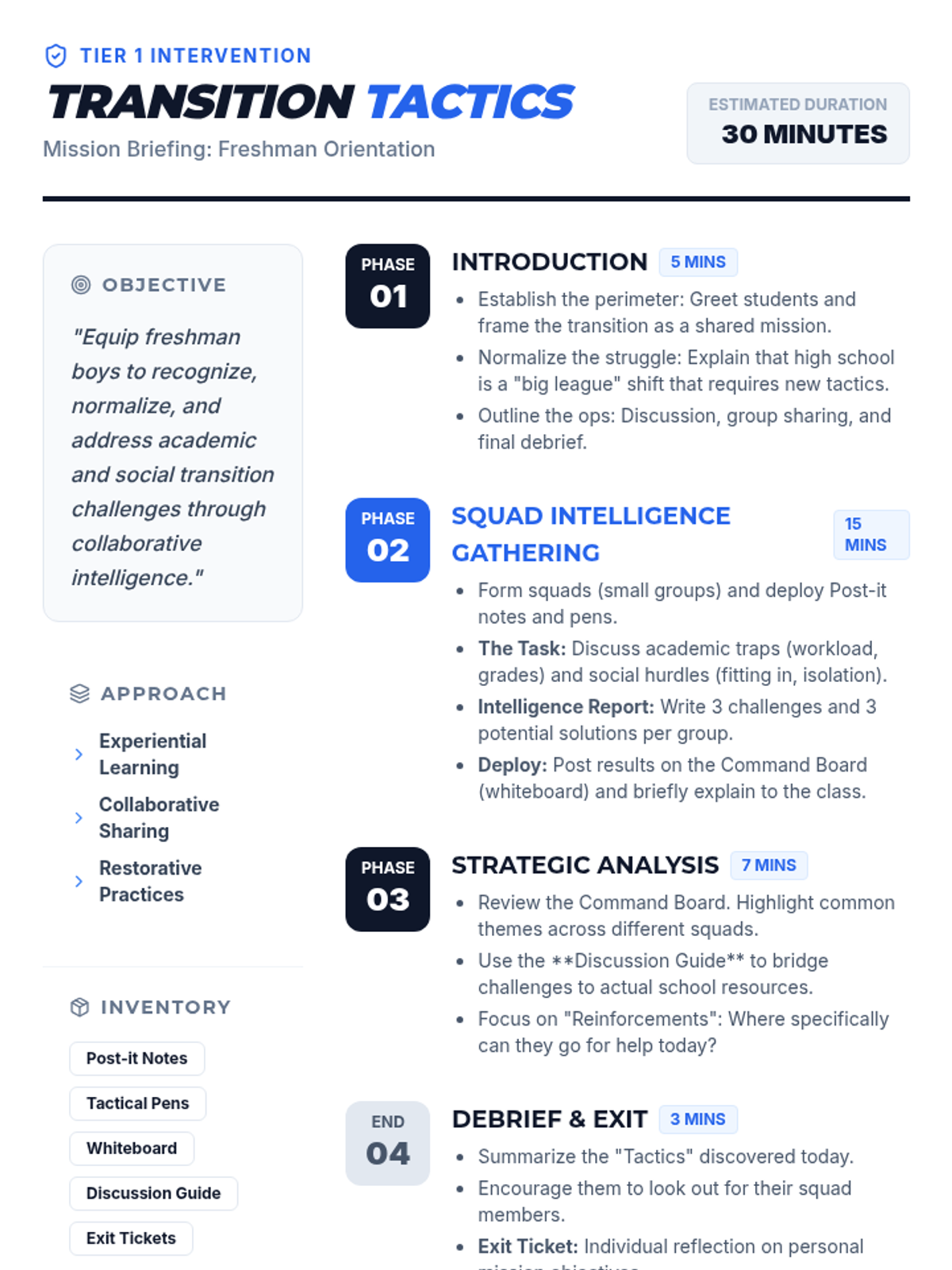 A lesson designed to help freshman boys navigate the academic and social shifts of high school through collaborative sharing and solution-finding.