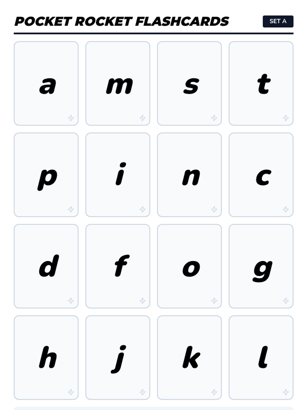 Students work in pairs to race through lowercase letter flashcards, focusing on increasing their speed and accuracy in sound production.