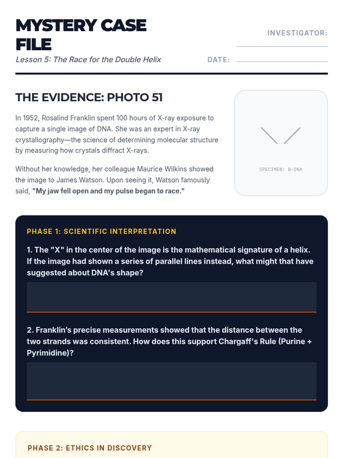 An exploration of the collaborative and competitive history behind the discovery of the double helix, focusing on Photo 51 and the contributions of key scientists.