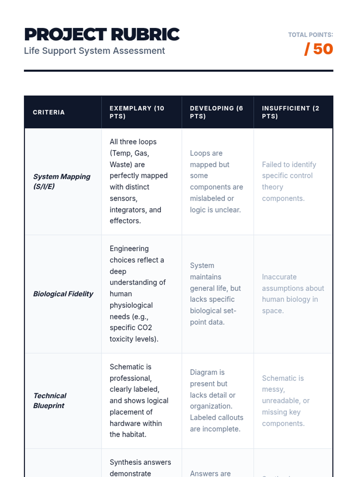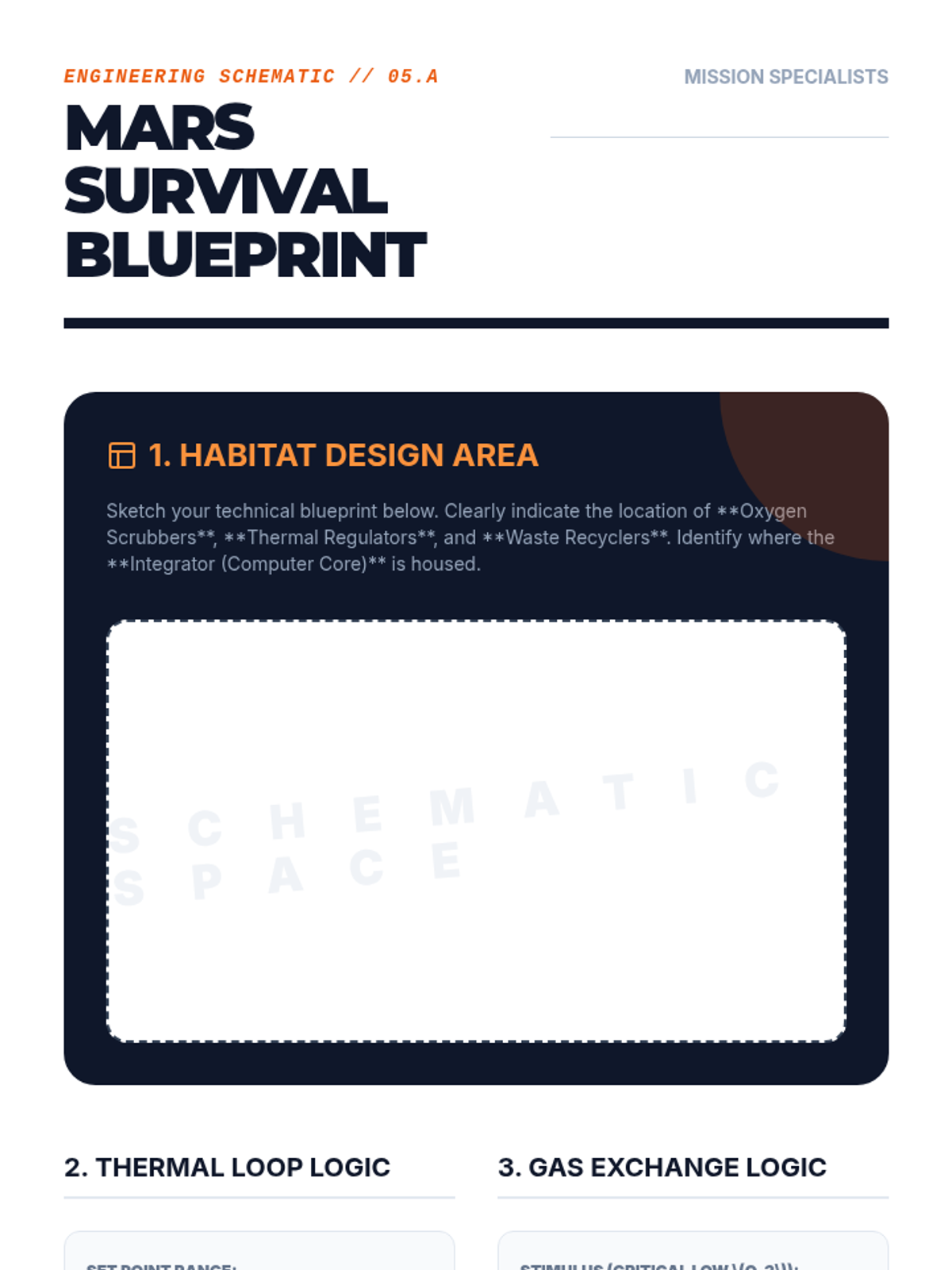 A design challenge where students create a blueprint for a life-support system that maintains homeostasis in an extreme environment.