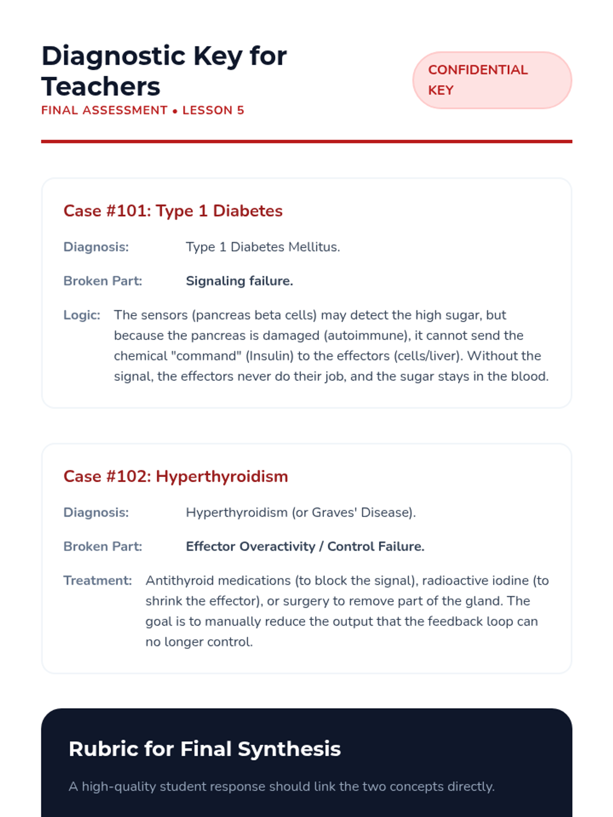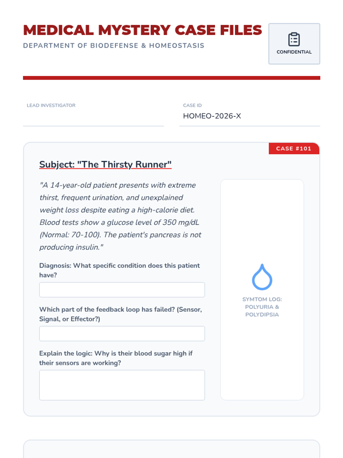 Application of homeostatic principles to diagnose diseases resulting from system failures, such as Diabetes and Hyperthyroidism.