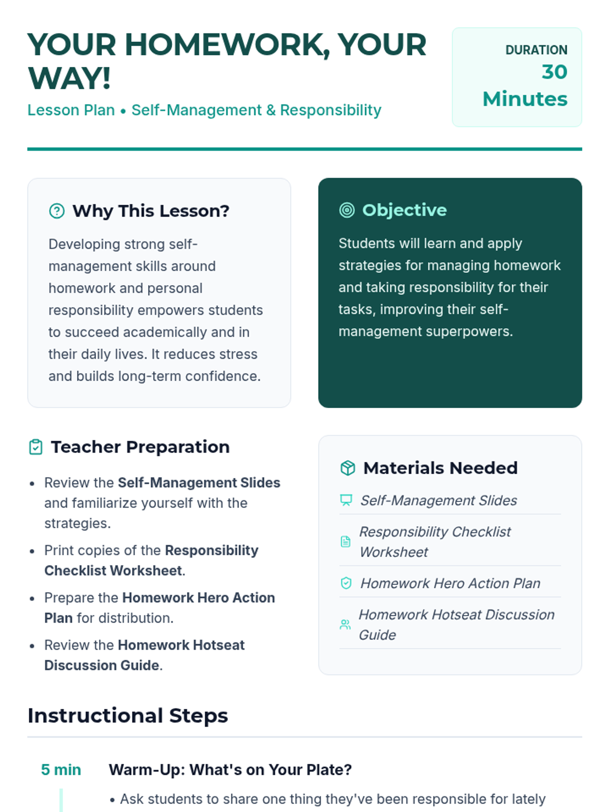 Developing strong self-management skills around homework and personal responsibility empowers students to succeed academically and in their daily lives.
