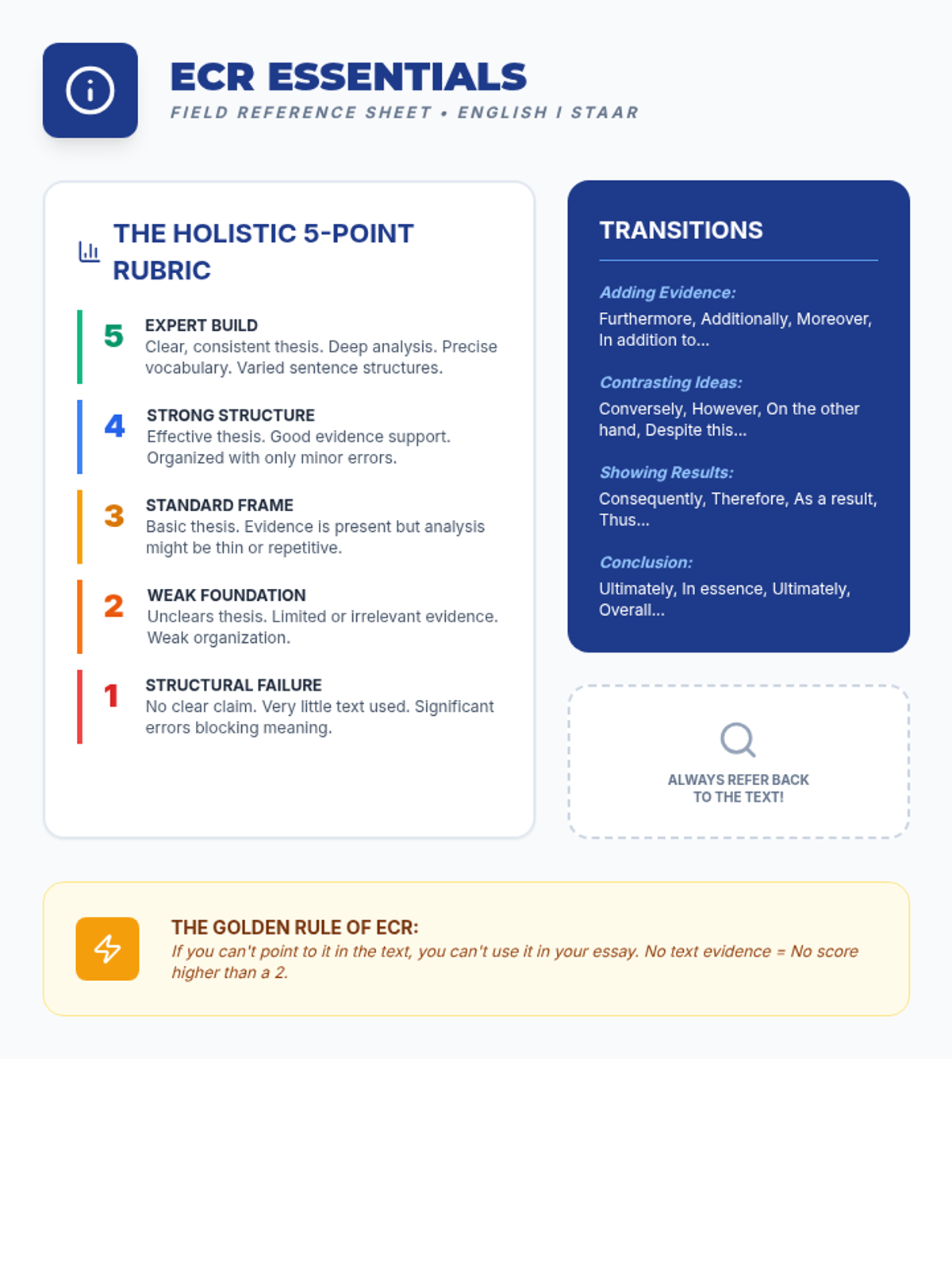A comprehensive STAAR prep lesson focused on mastering the Extended Constructed Response (ECR). Students will practice crafting strong thesis statements, planning structured essays, and using rubric-aligned strategies to revise their writing for both informational and argumentative prompts.