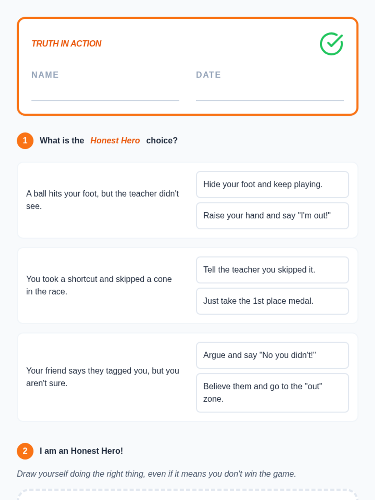 Focuses on the value of honesty during gameplay, specifically self-reporting when 'out' or making mistakes.