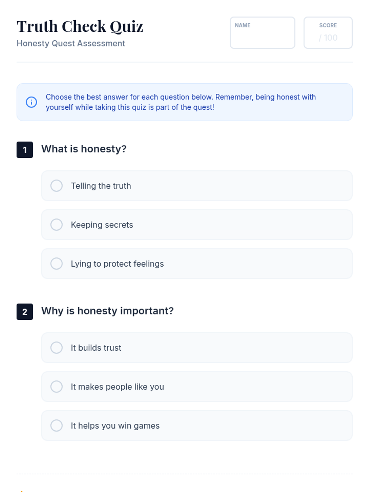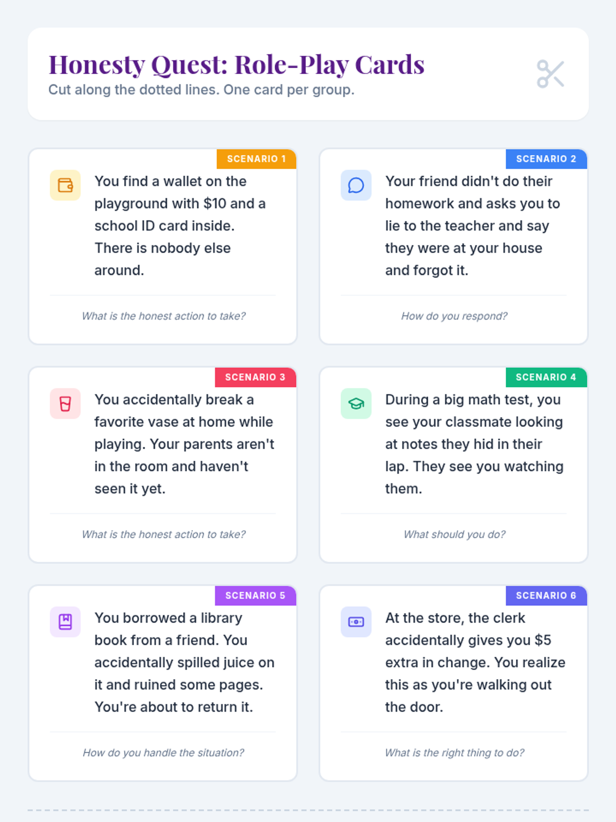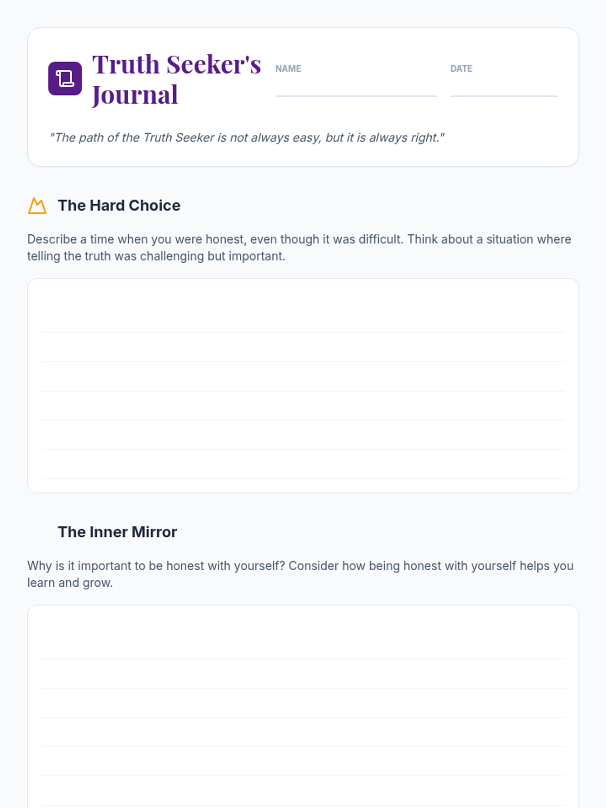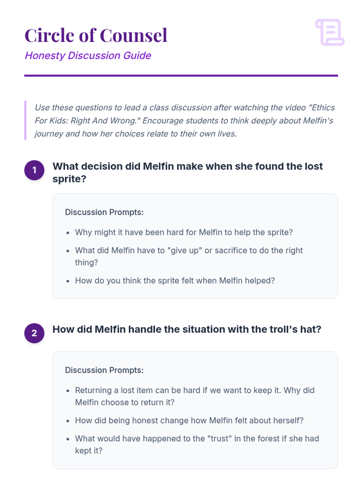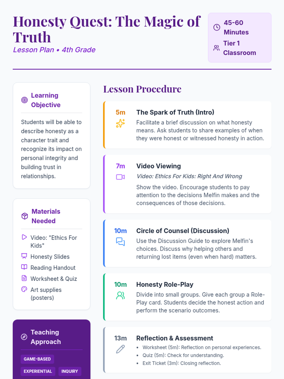 A magical quest-themed lesson for 4th graders to explore honesty through storytelling, role-play, and reflective activities. Students learn about ethical decision-making and building trust through the lens of a character's journey.