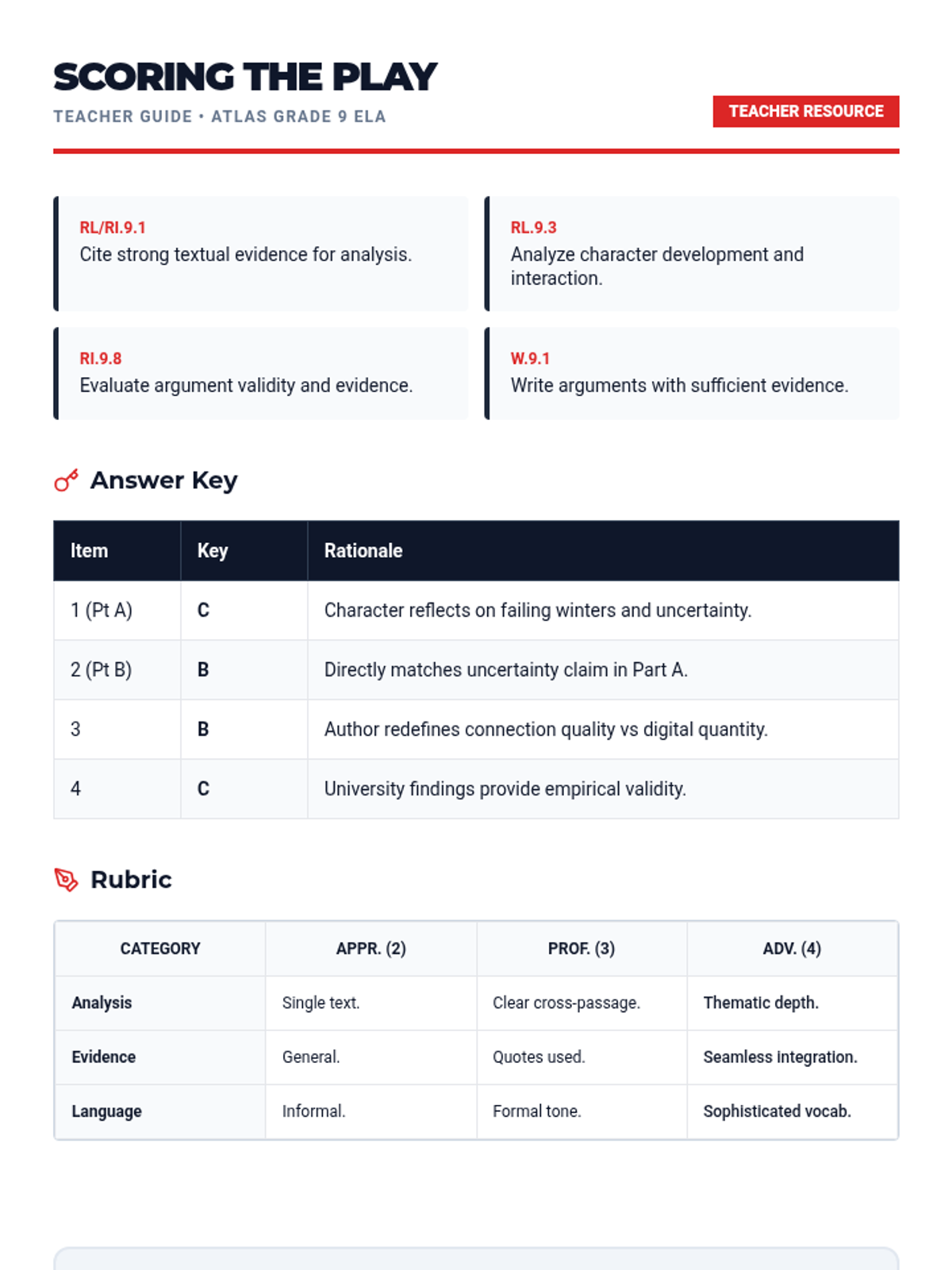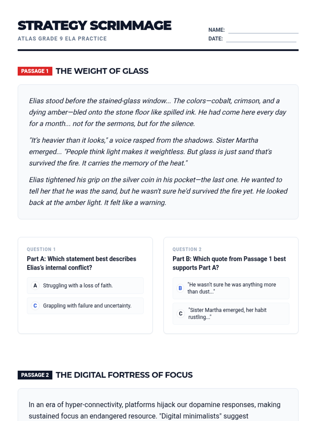 A comprehensive test-prep lesson designed to equip Grade 9 students with the strategic thinking and analytical skills required for the Arkansas ATLAS ELA assessment, focusing on evidence-based responses and extended writing.