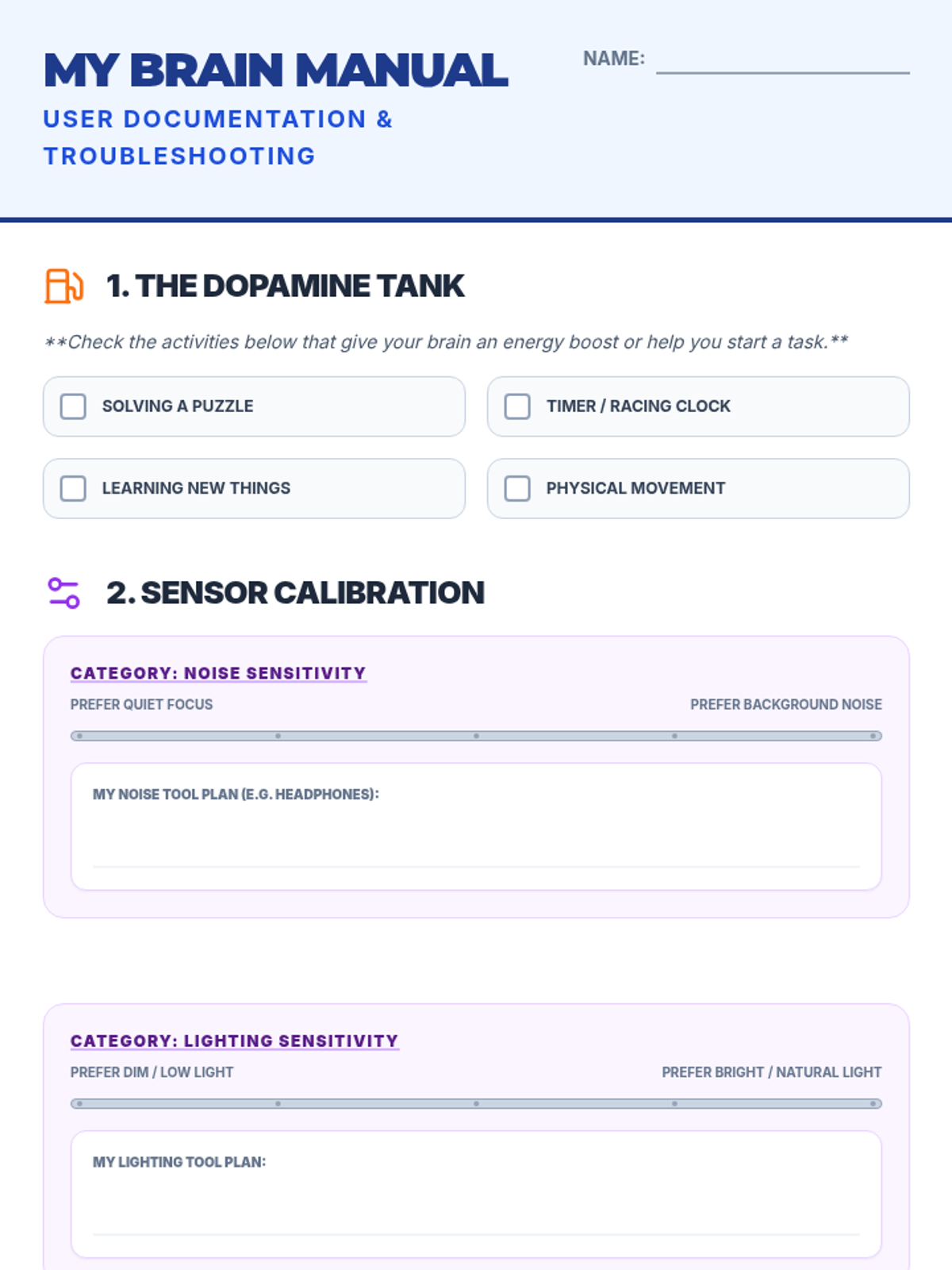 Practical strategies for managing time, focus, and sensory needs by working with the brain's natural tendencies.