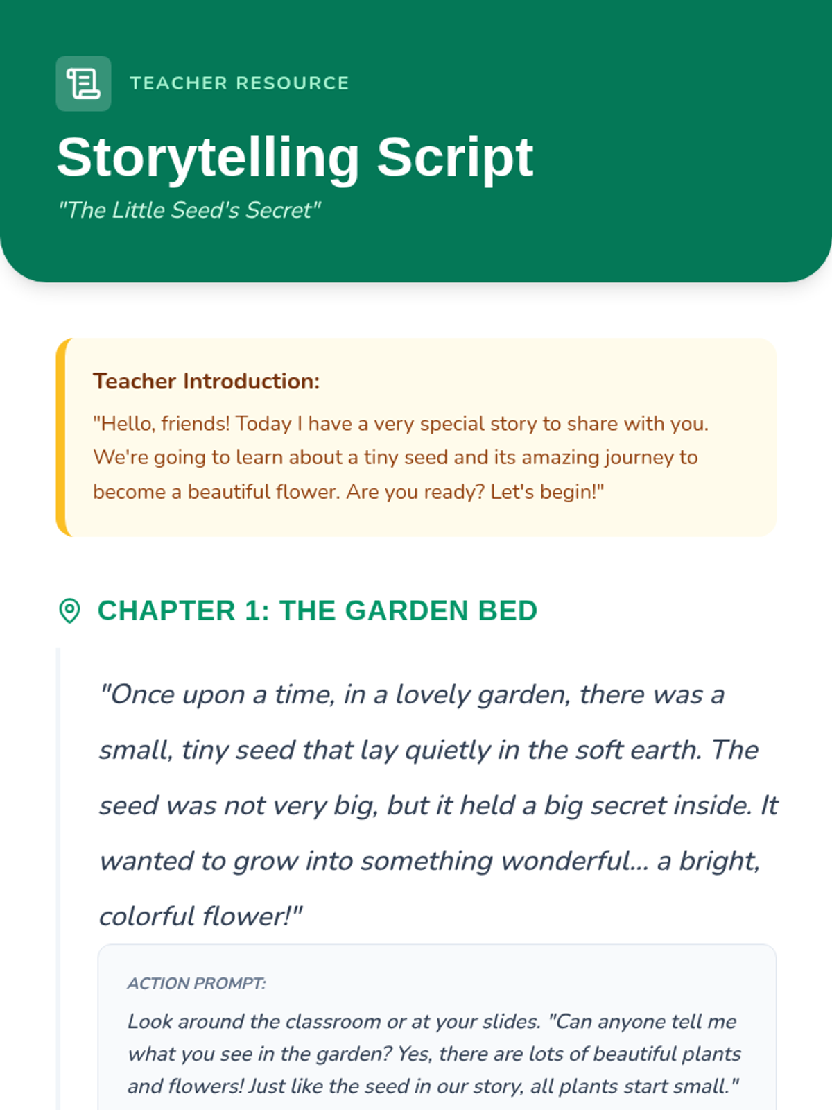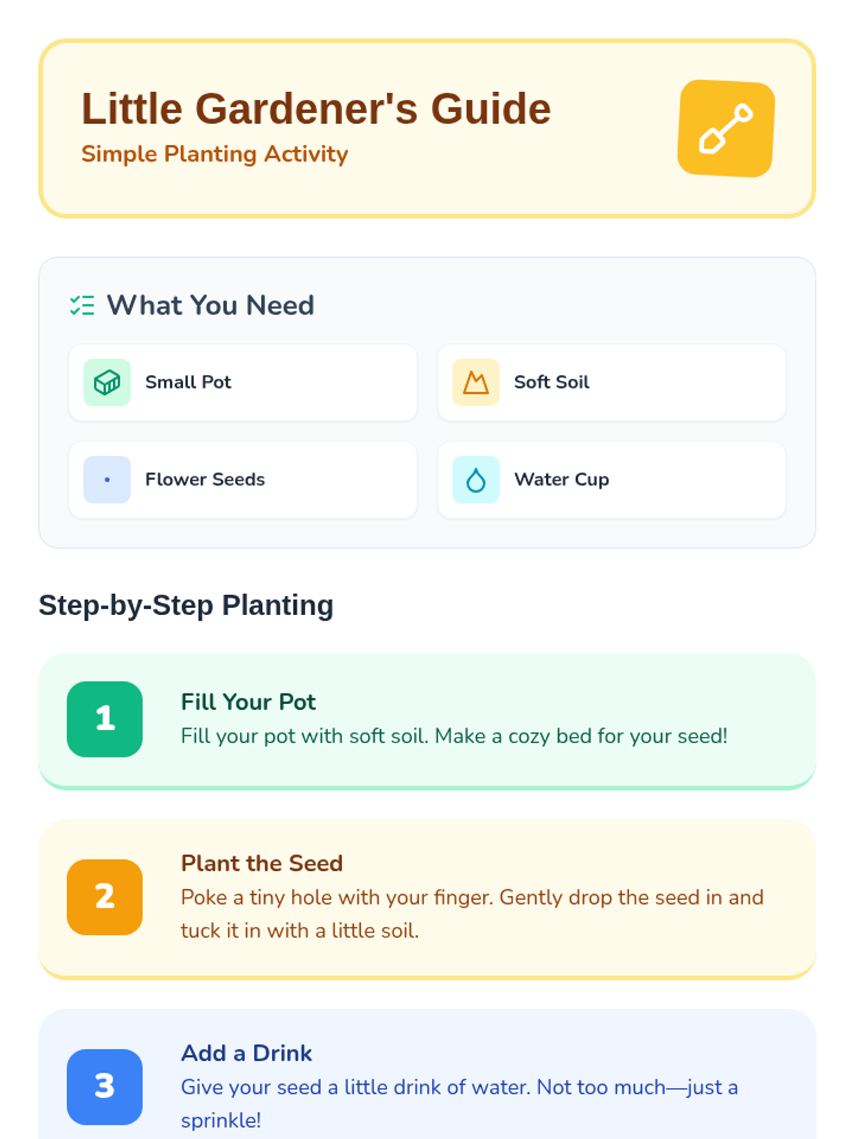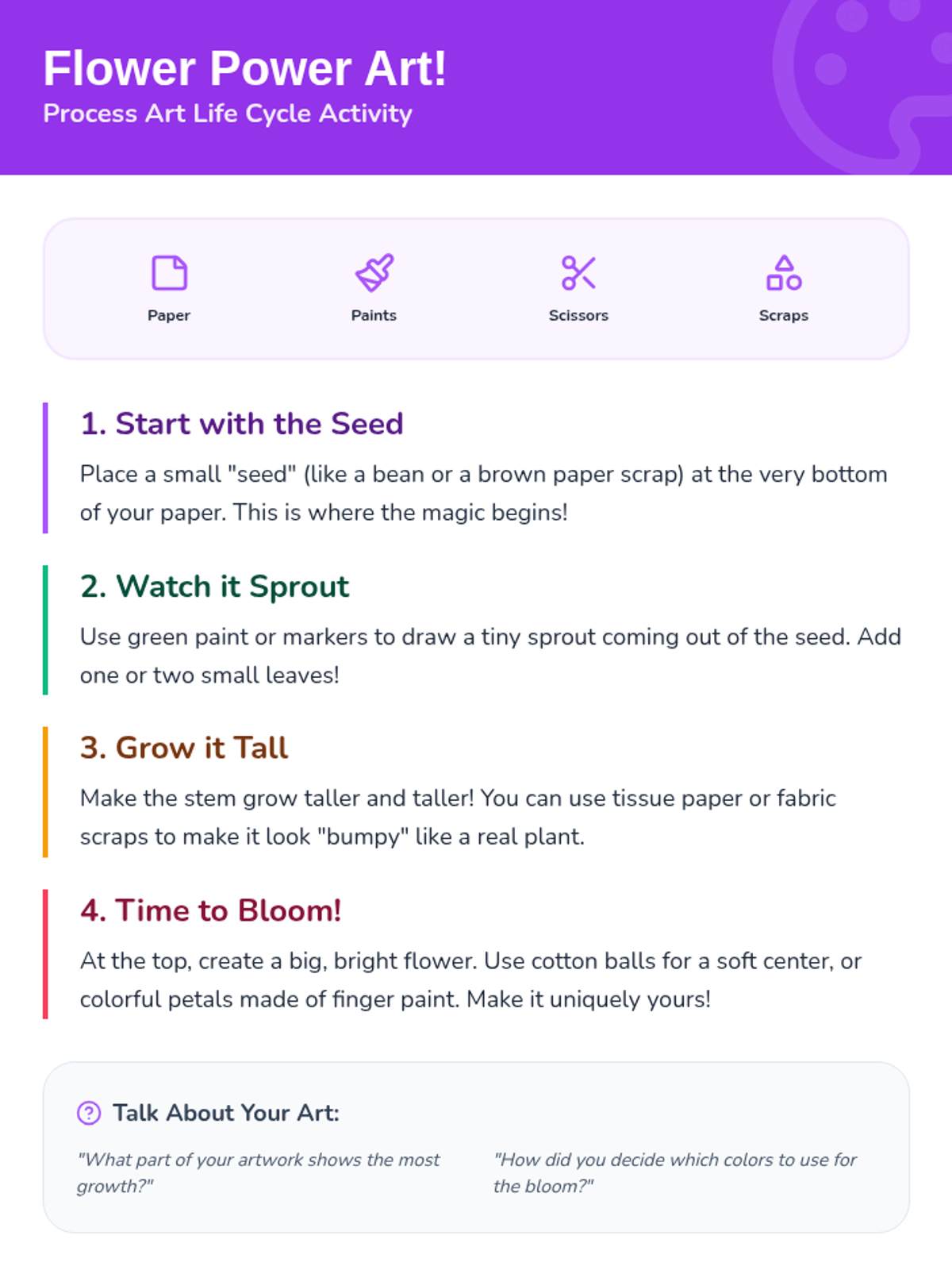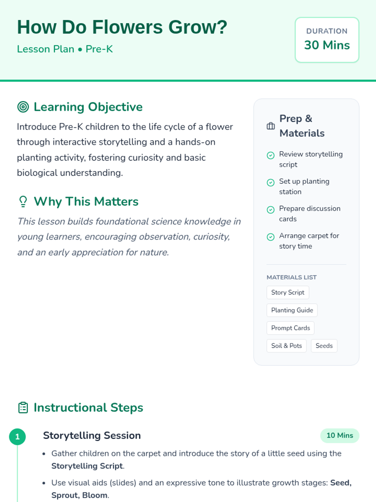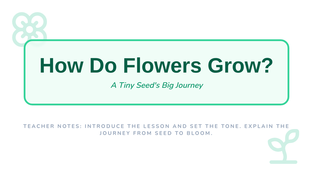 In this engaging lesson, Pre-K children will explore the fascinating process of how flowers grow. Through interactive activities and storytelling, students will learn about the life cycle of a flower, from seed to bloom.