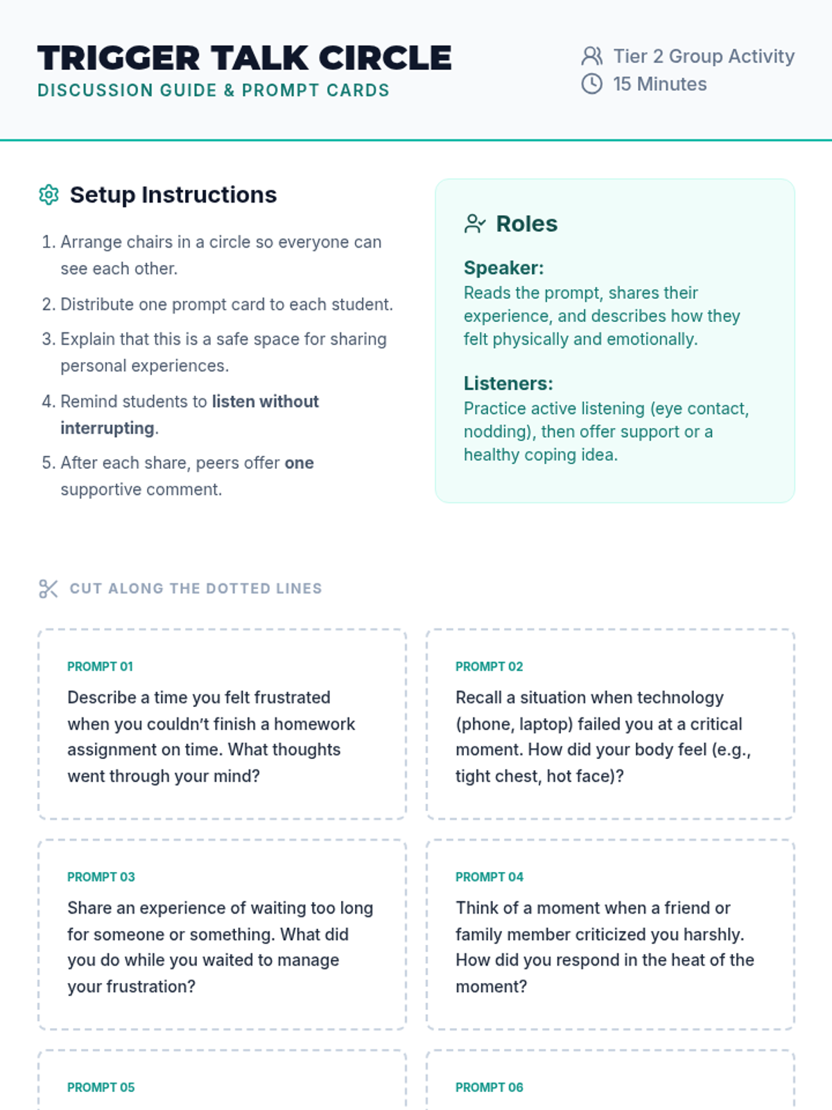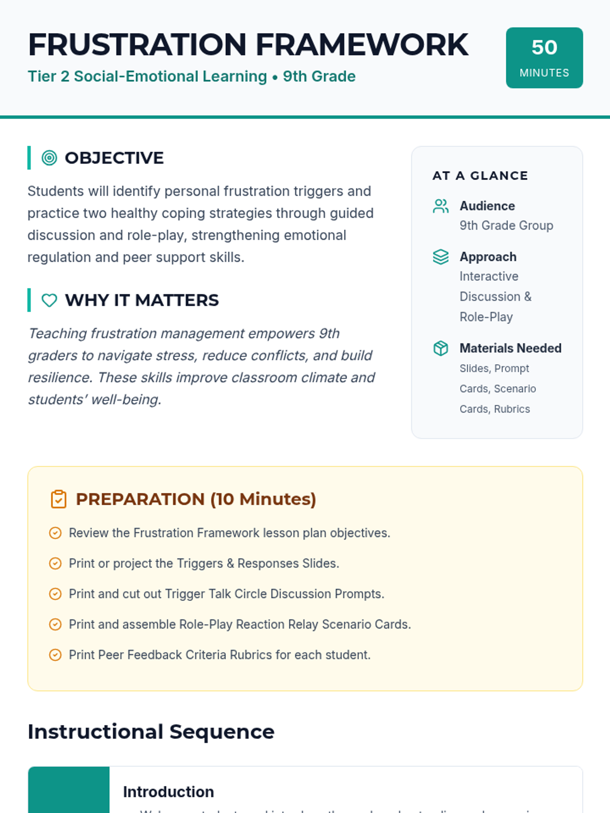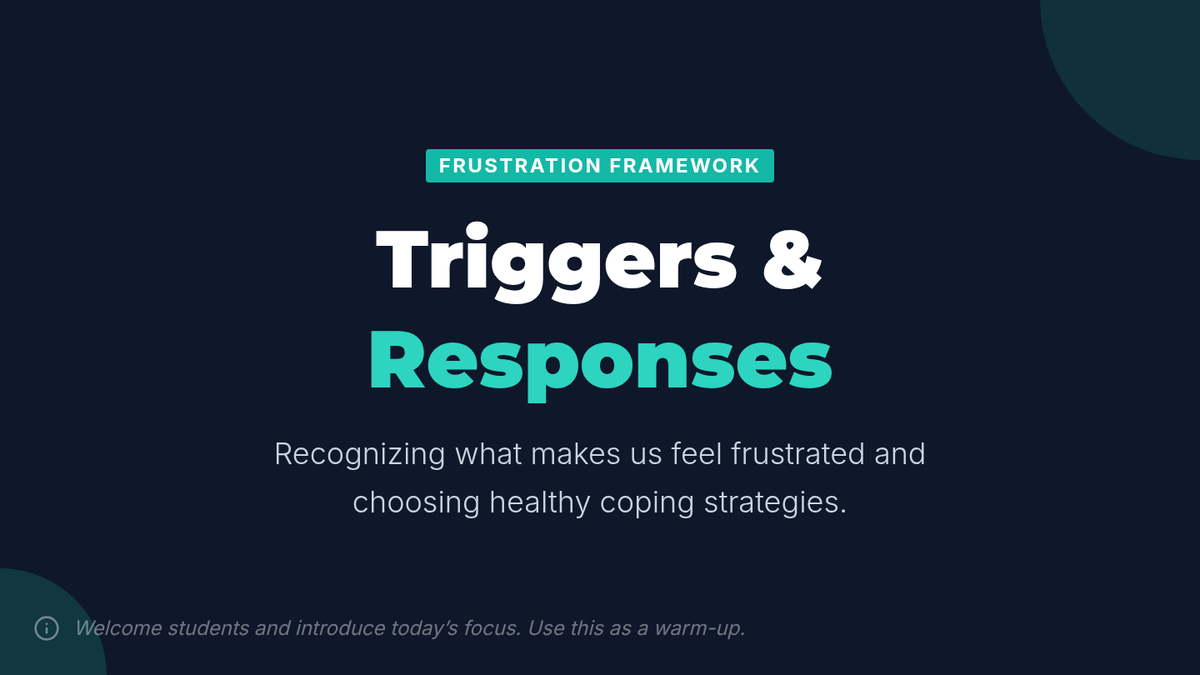 A 50-minute Tier 2 group lesson for 9th graders focused on identifying frustration triggers and practicing healthy coping strategies through circle discussions and role-play.