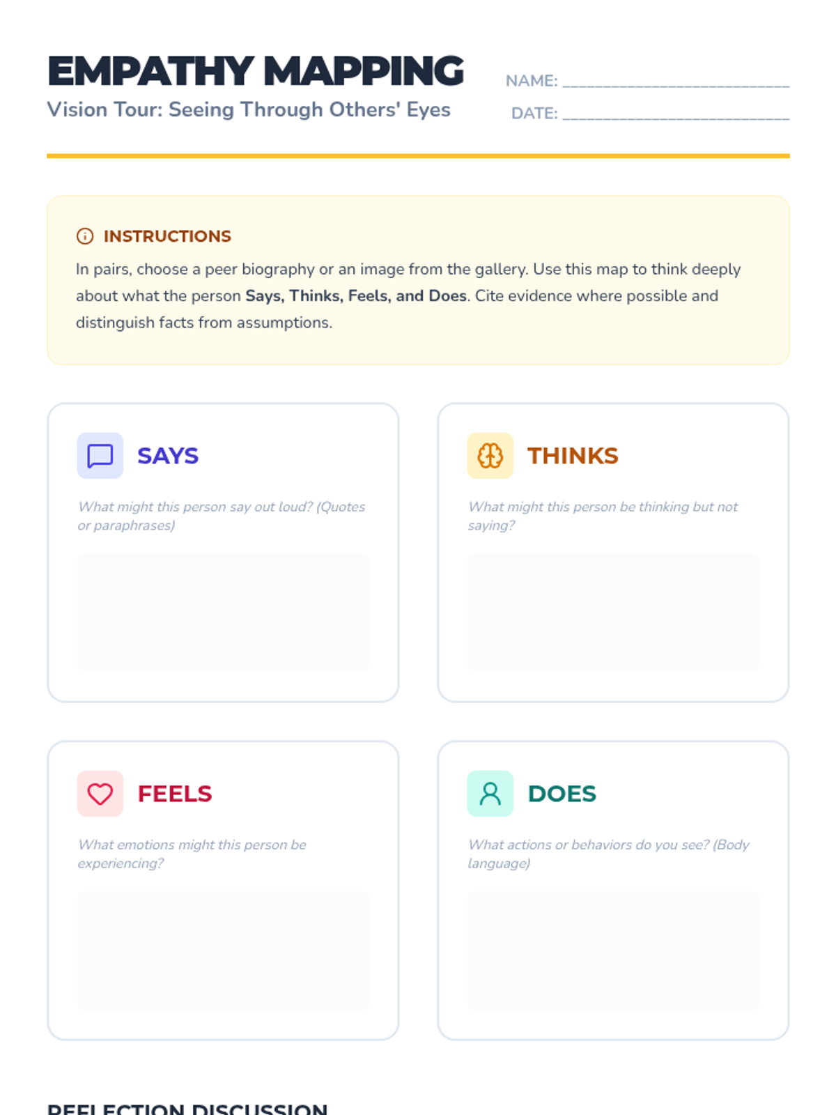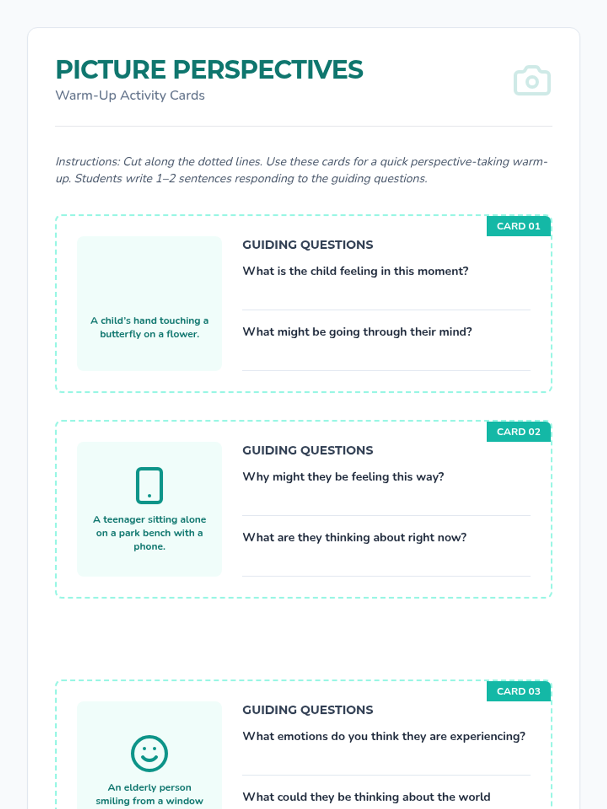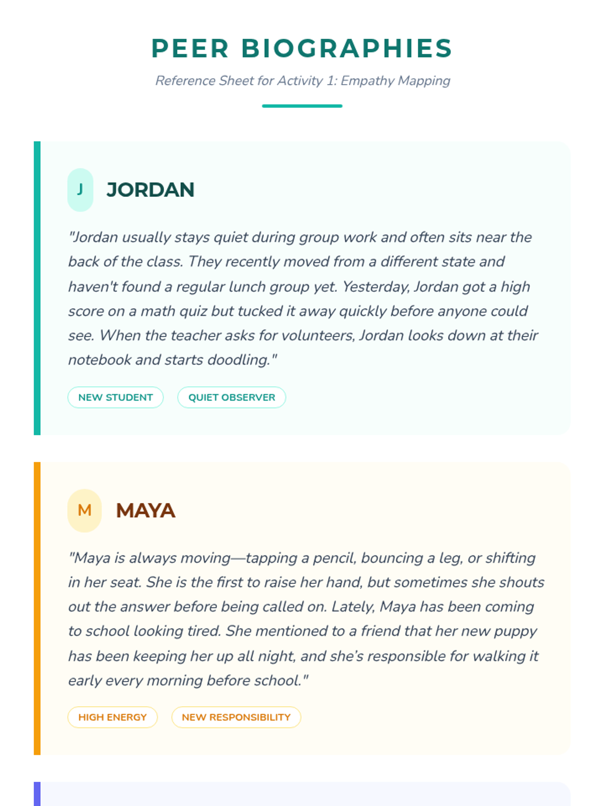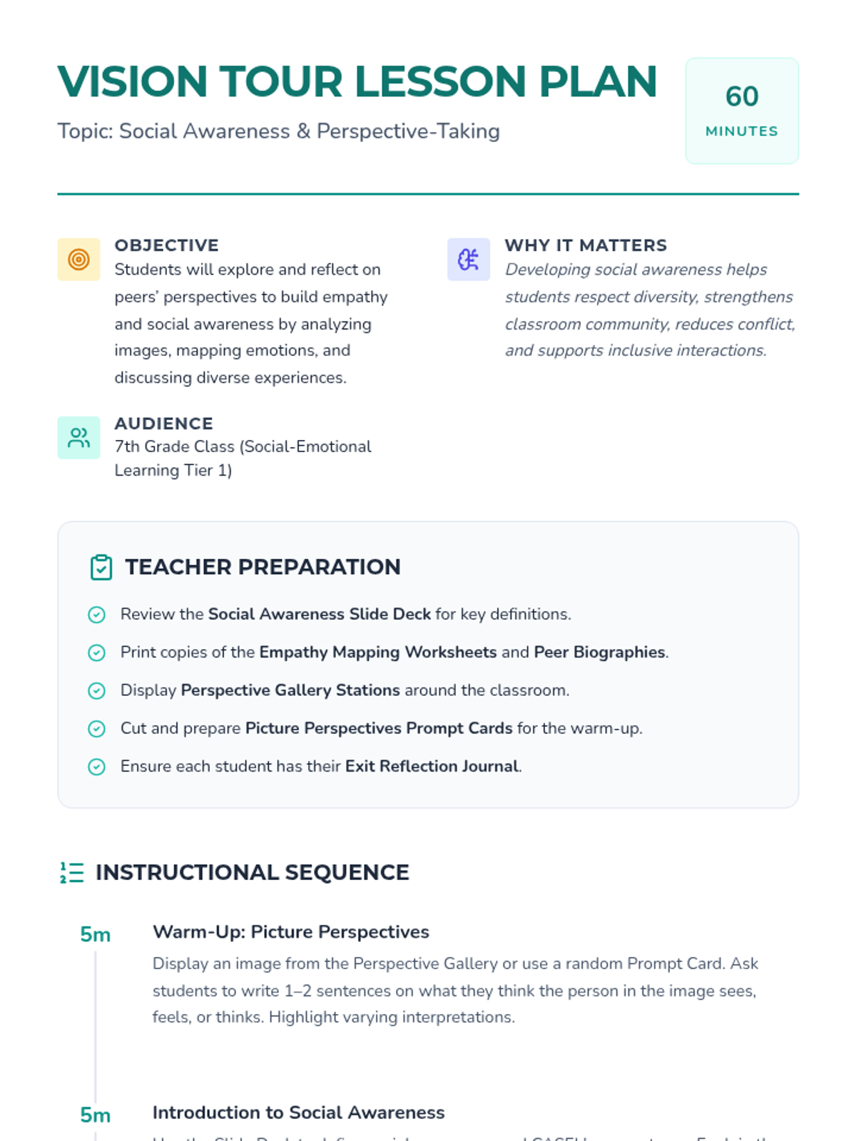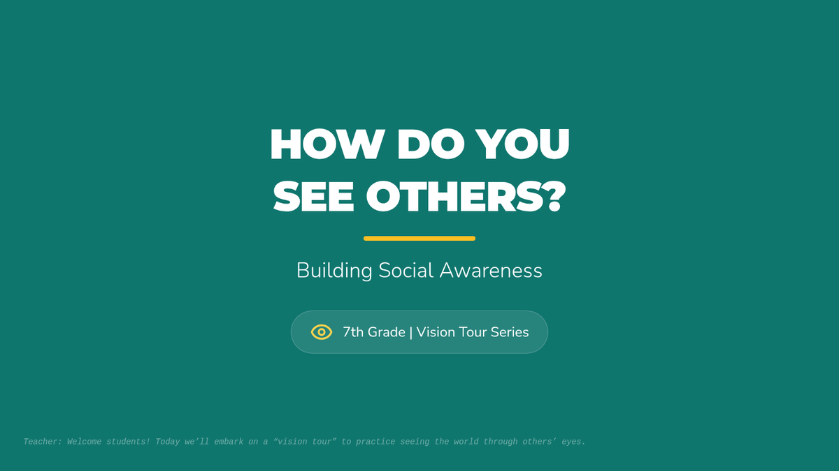 A whole-class 7th-grade lesson exploring peers’ perspectives and building empathy through interactive mapping, gallery walks, and personal reflection. Students develop social awareness by analyzing diverse experiences and identifying ways to strengthen their classroom community.