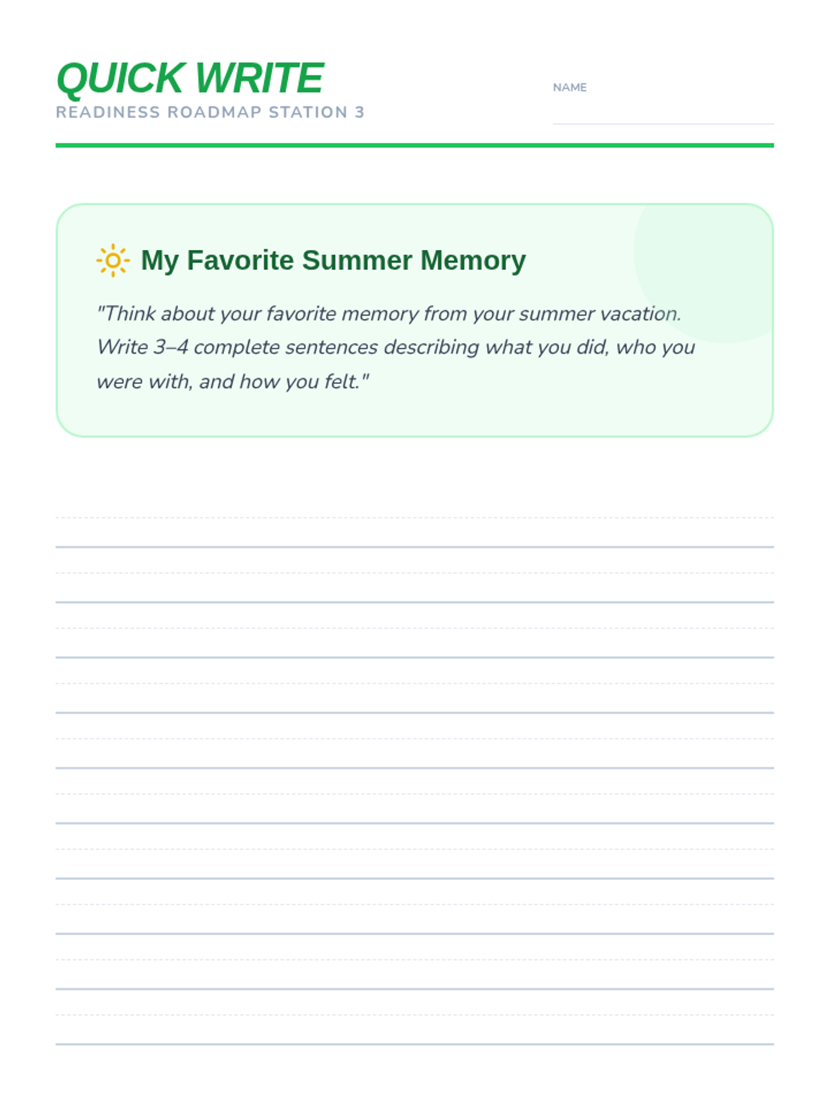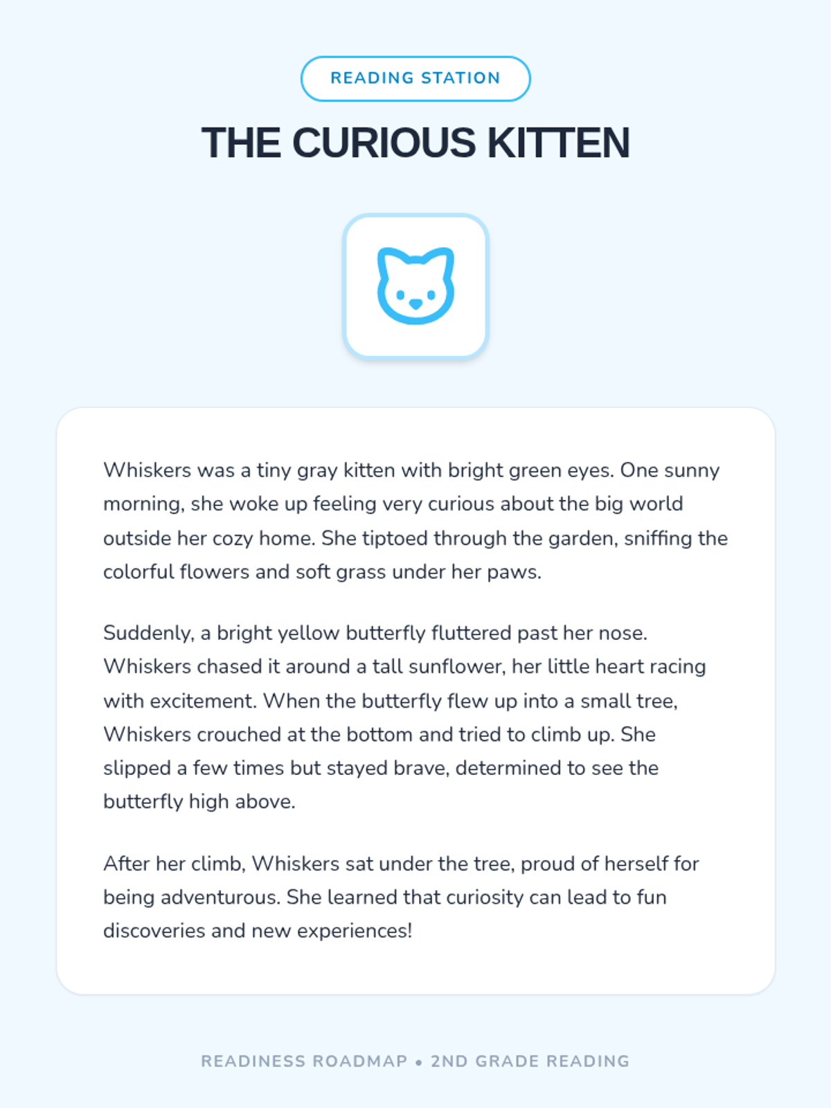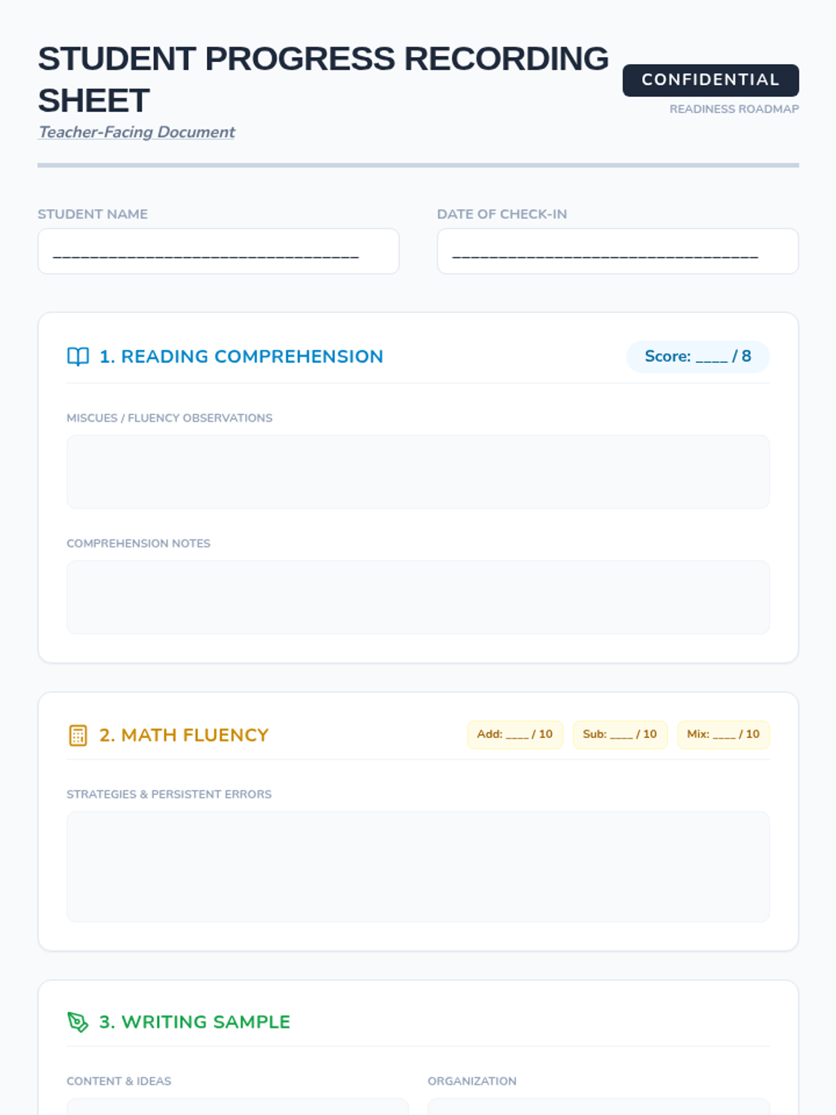 A quick, 15-minute one-on-one end-of-year progress assessment for 2nd graders to evaluate reading, math, and writing readiness for summer.