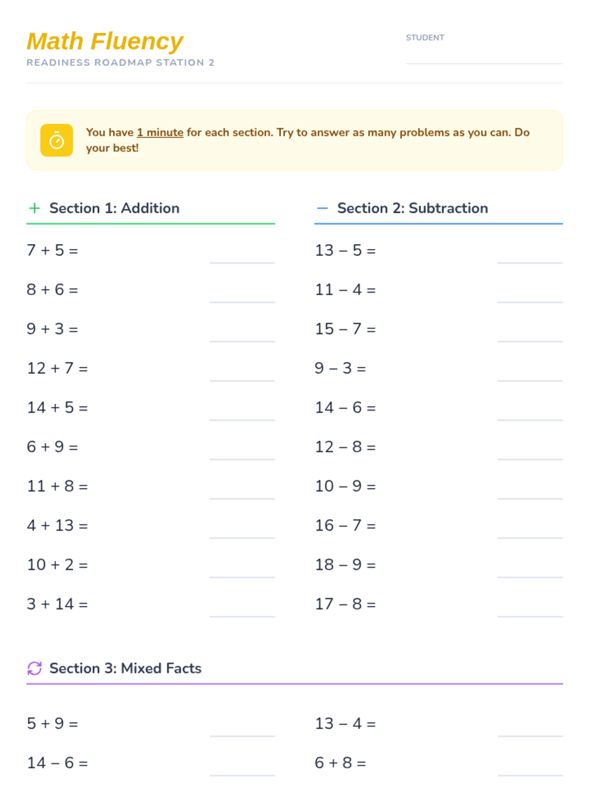 A comprehensive set of tools for assessing and tracking a student's ability to identify numbers 1 through 20 in randomized order.