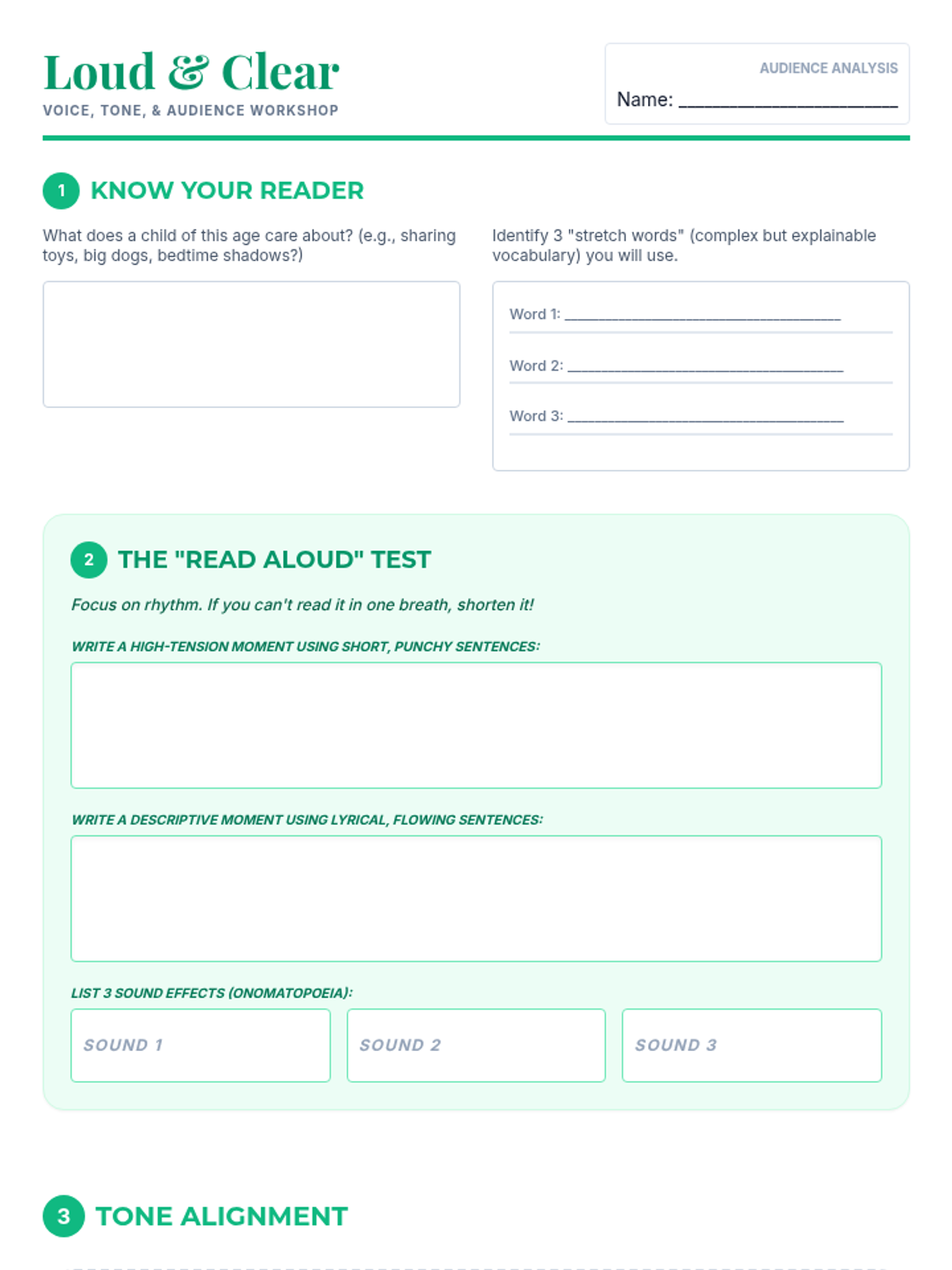 Polishes the narrative voice by adjusting language, tone, and sentence structure to suit a specific target age group.