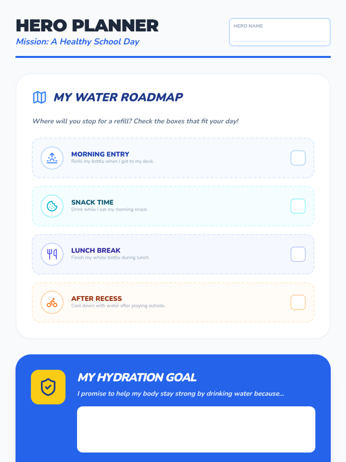 Students map out their daily school schedule to integrate hydration breaks and create visual reminders for their water habits.