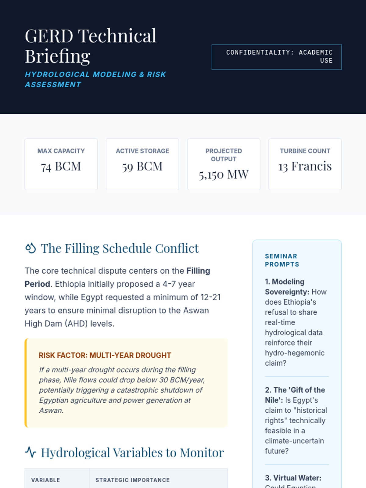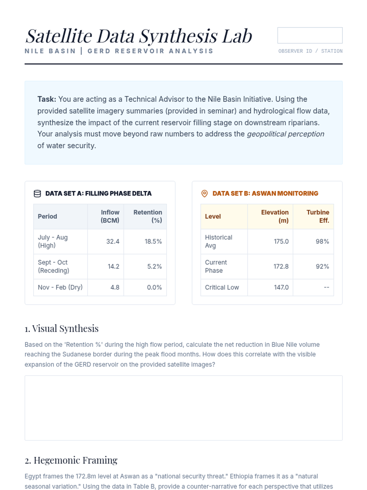 This lesson deconstructs the Grand Ethiopian Renaissance Dam (GERD) dispute using hydro-hegemony theory, analyzing technical filling data and its impact on regional power dynamics.